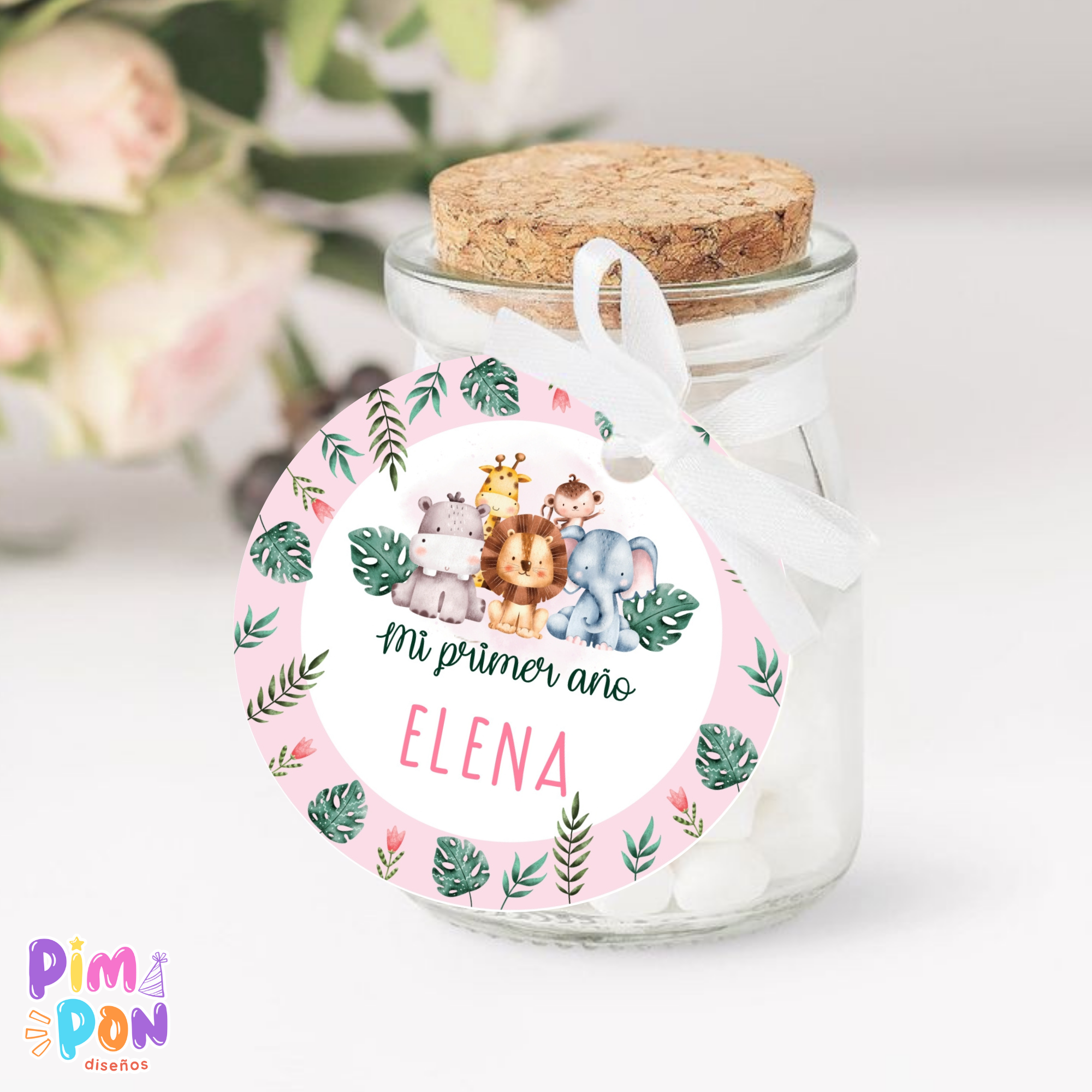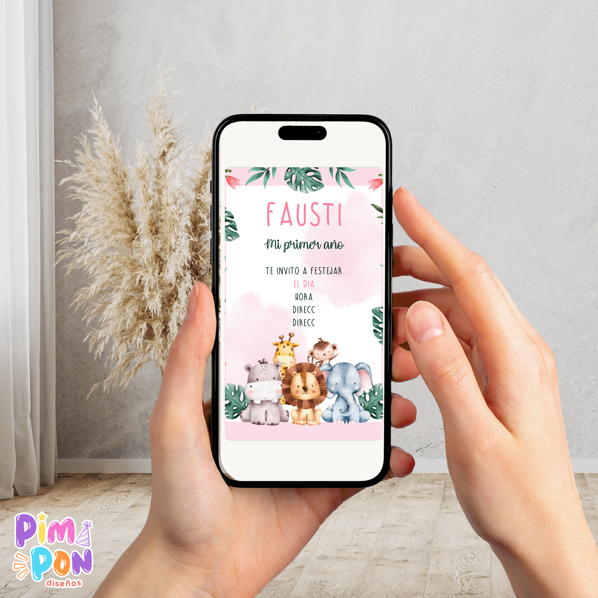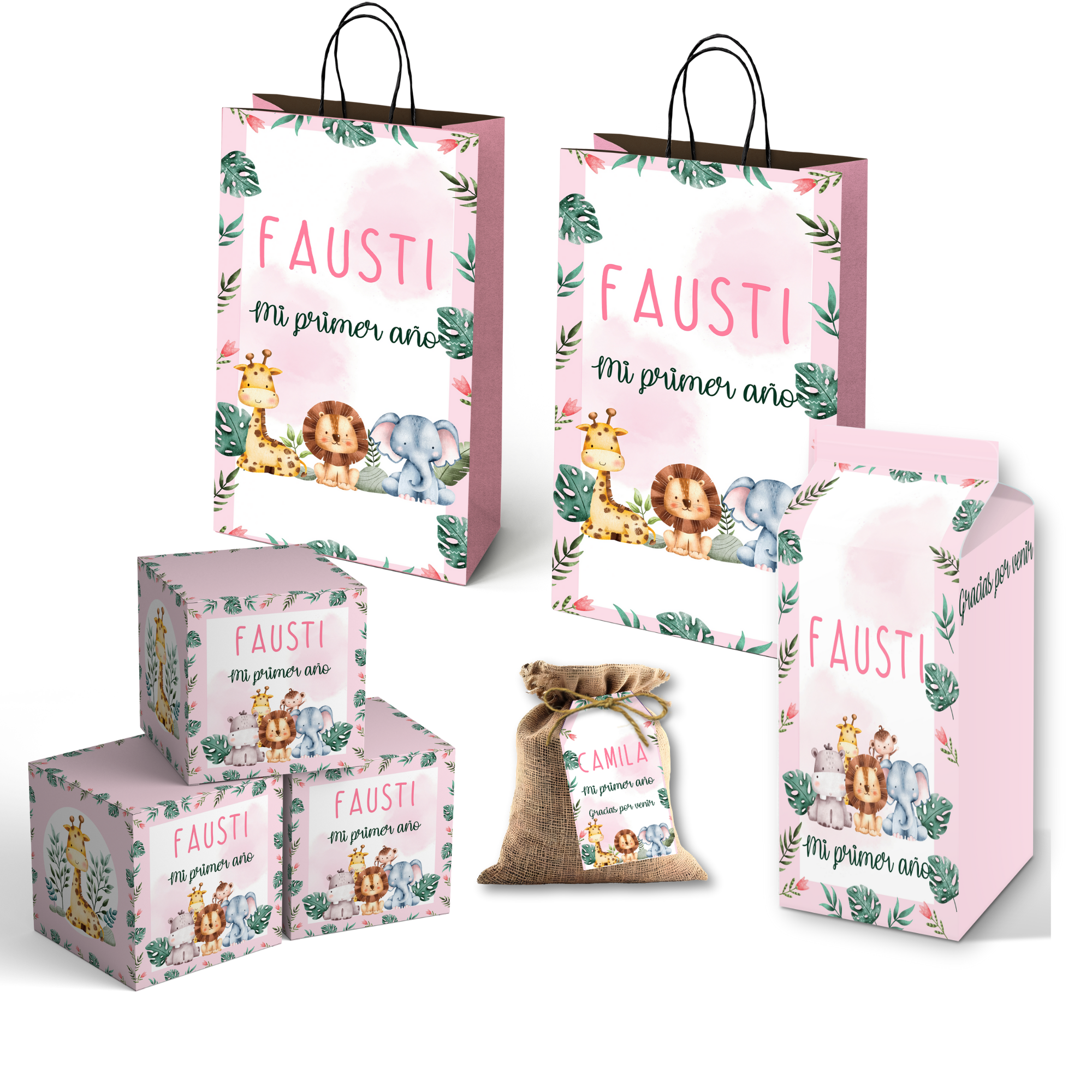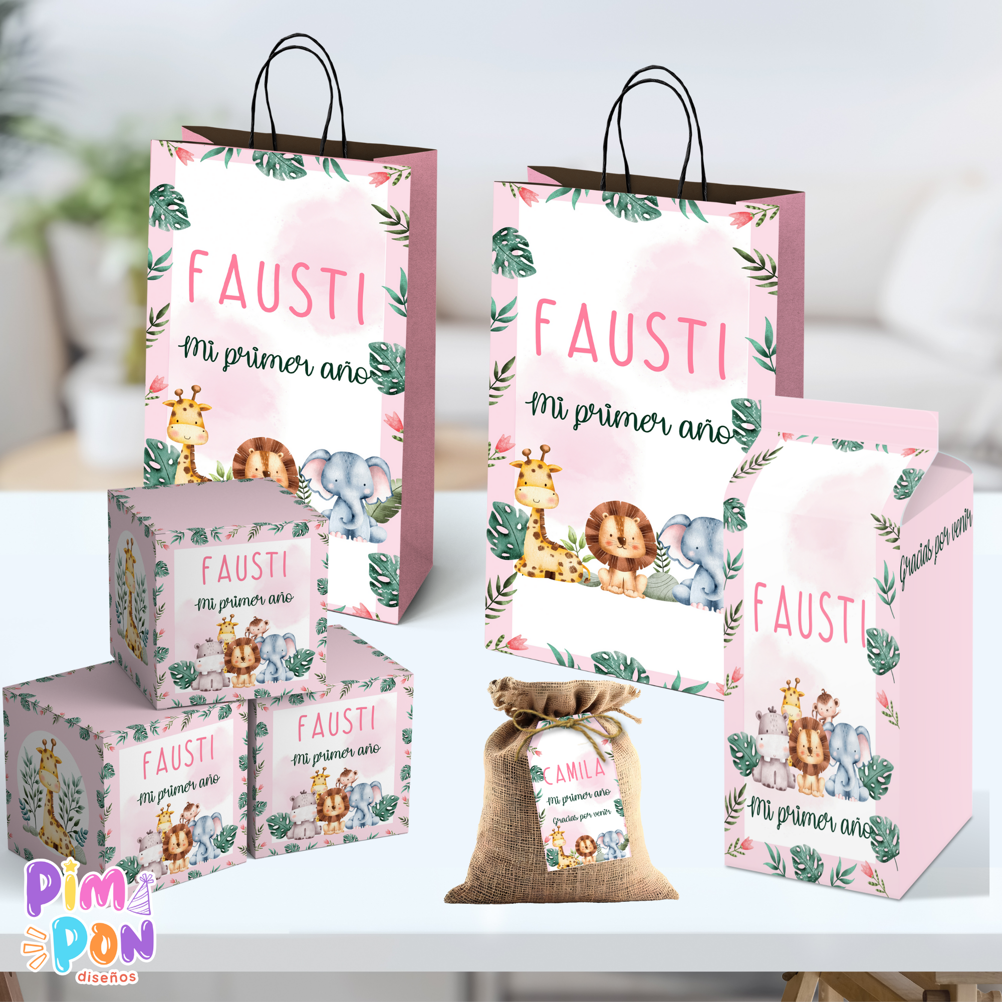 kit imprimible textos editables - ANIMALITOS DE LA SELVA MOD. 2 ROSA