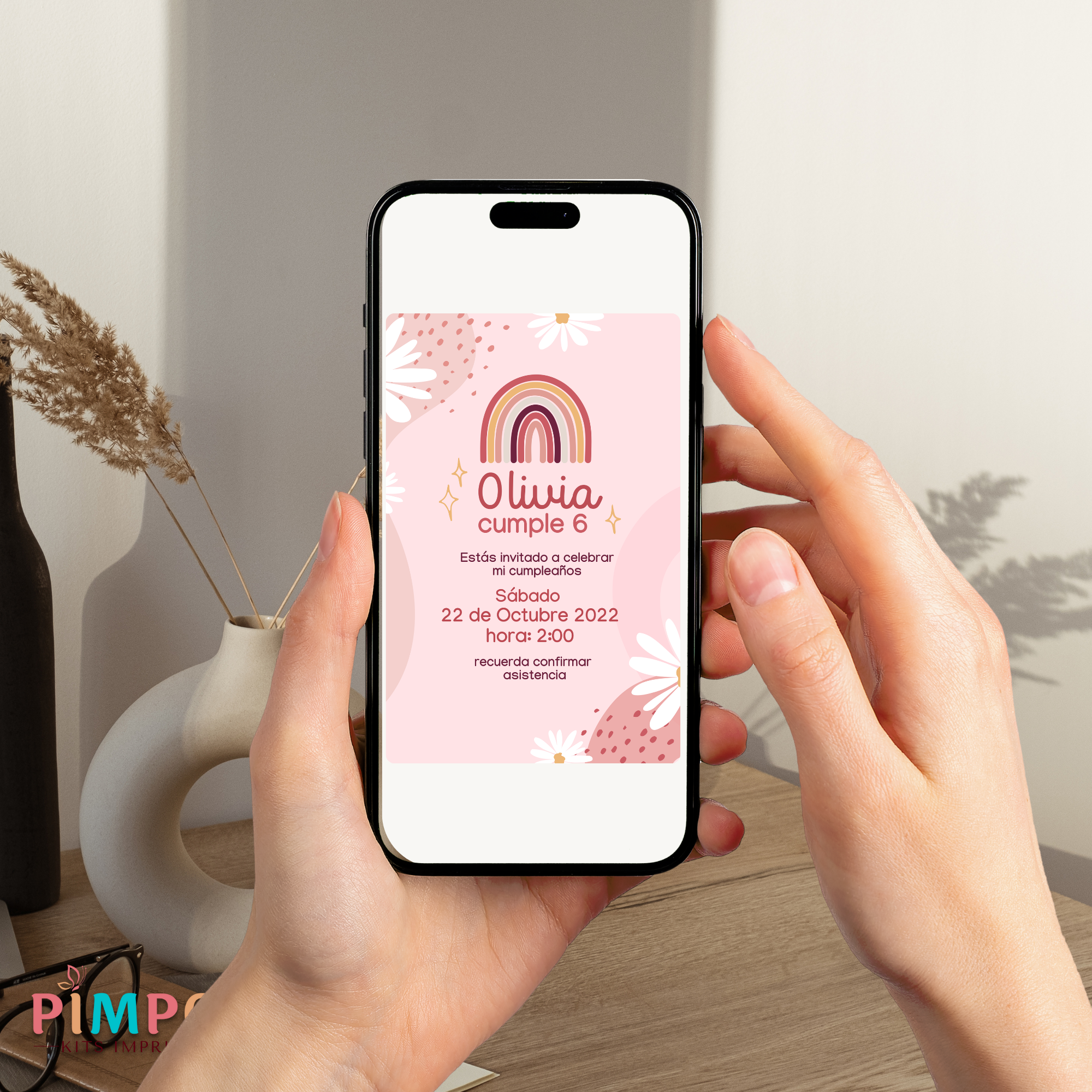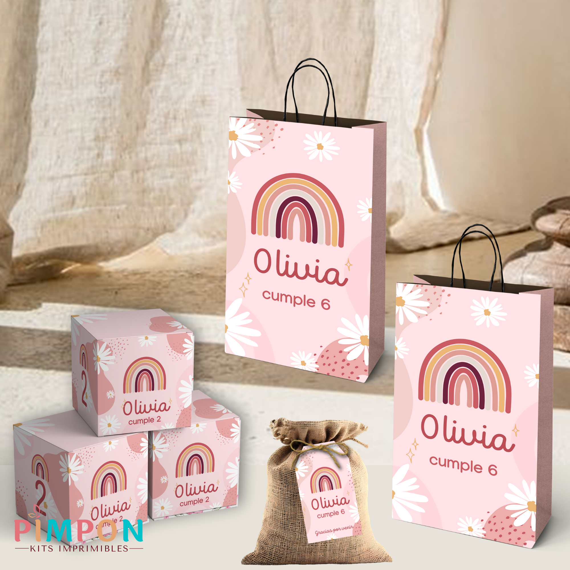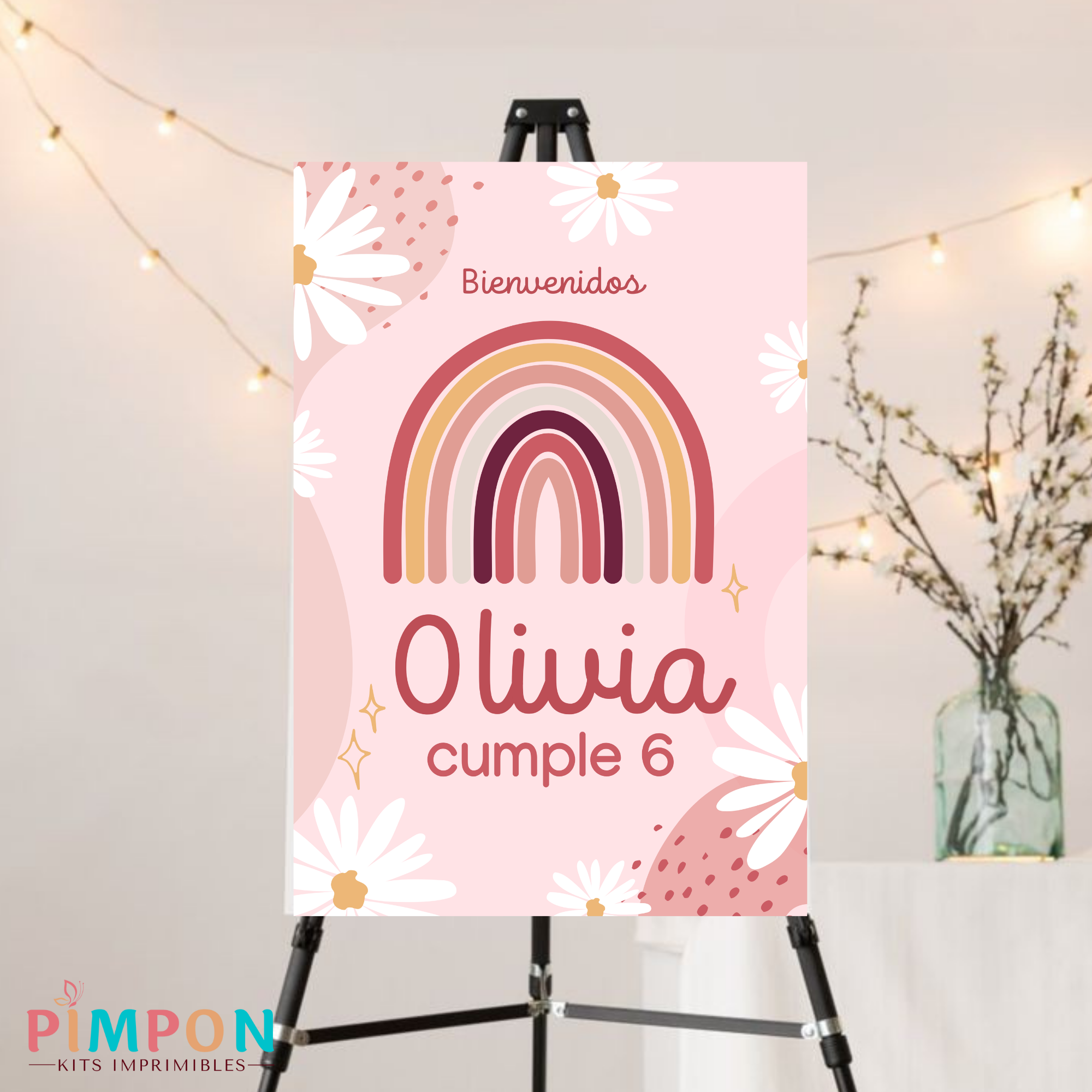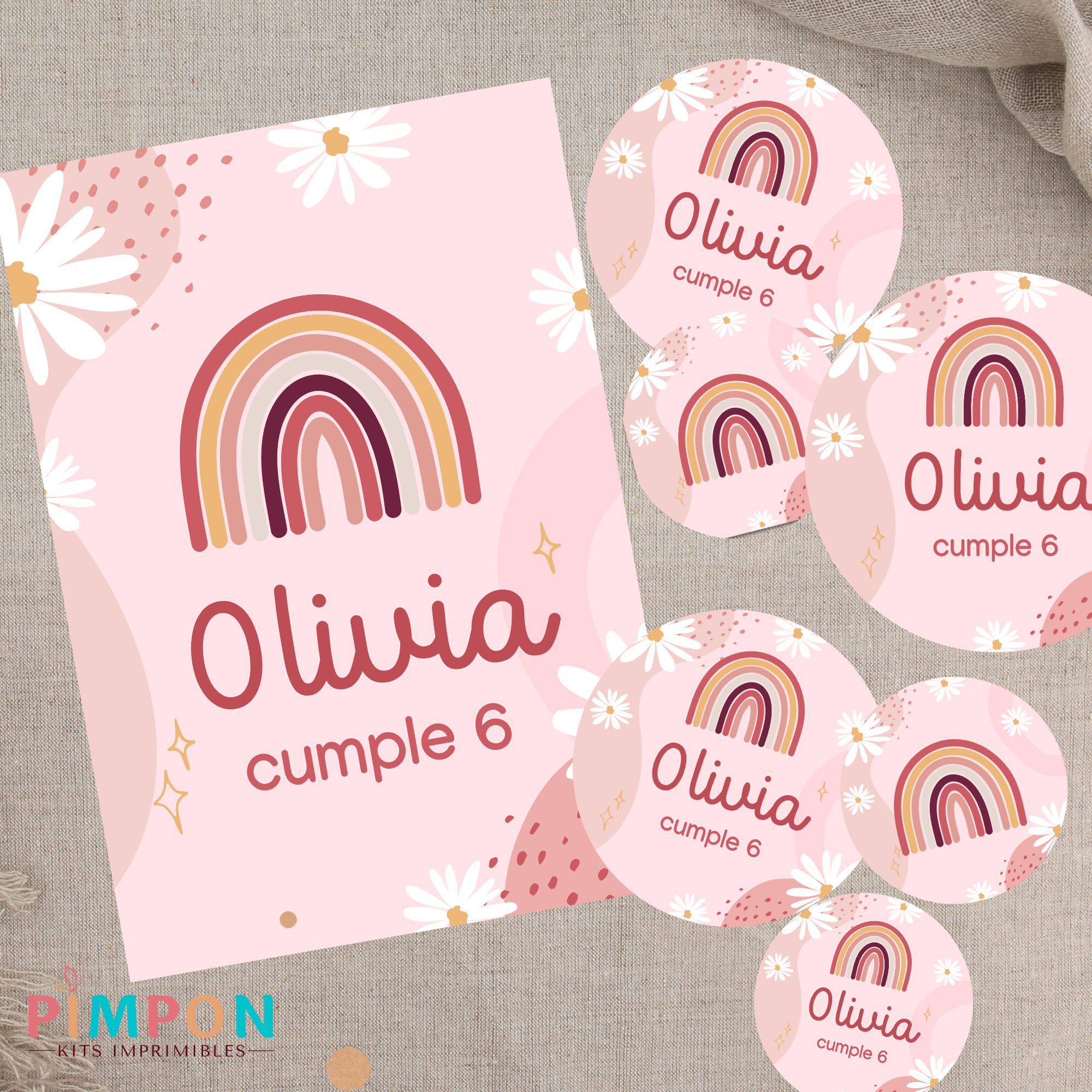 kit imprimible personalizado - ARCOIRIS Y MARGARITAS ROSA