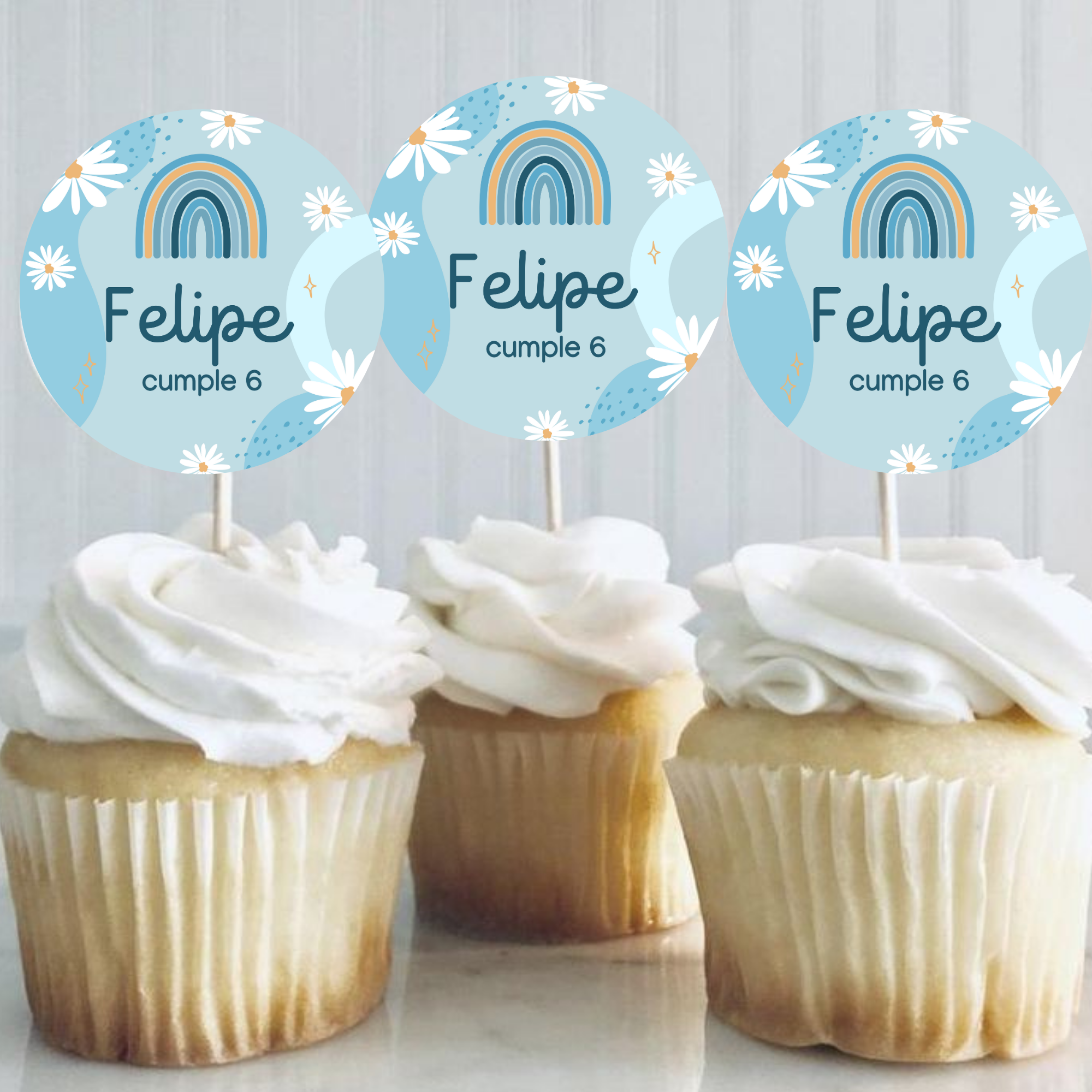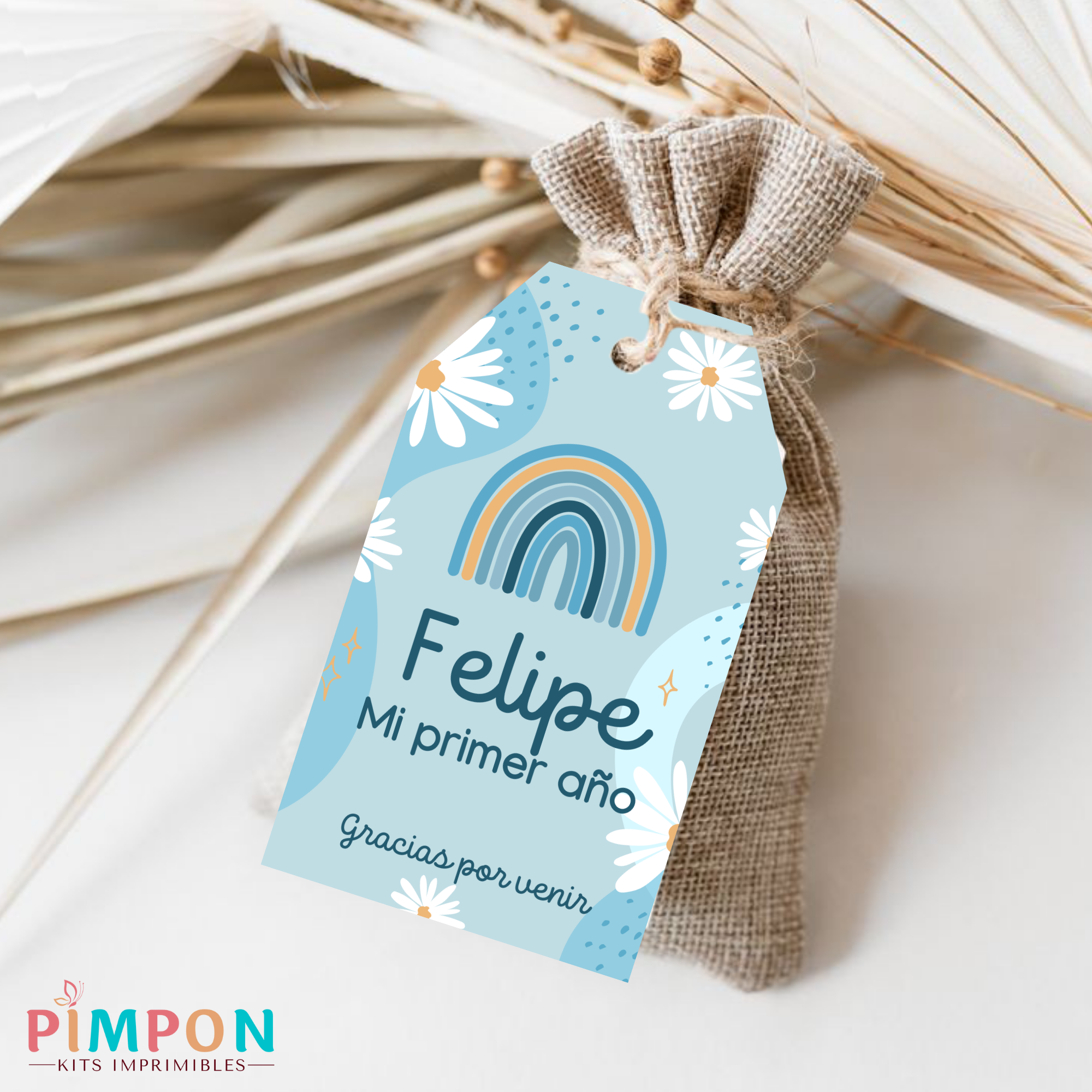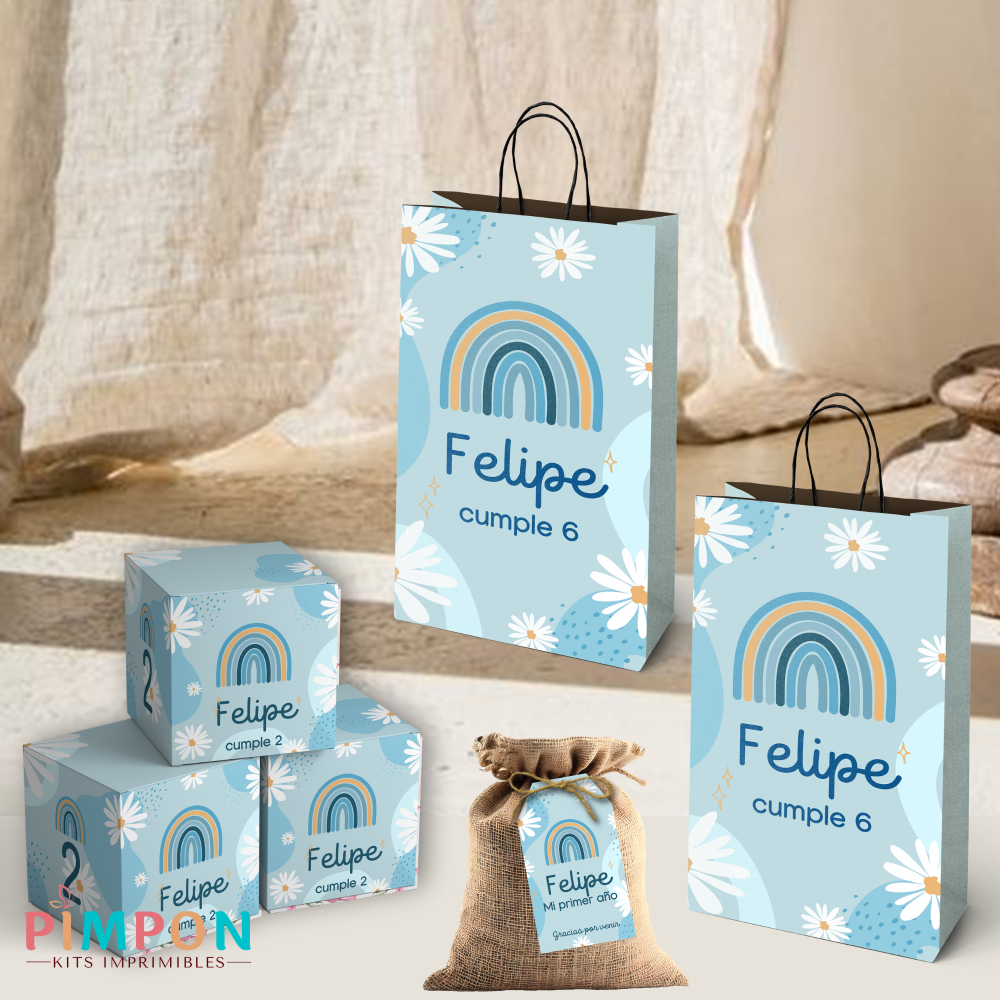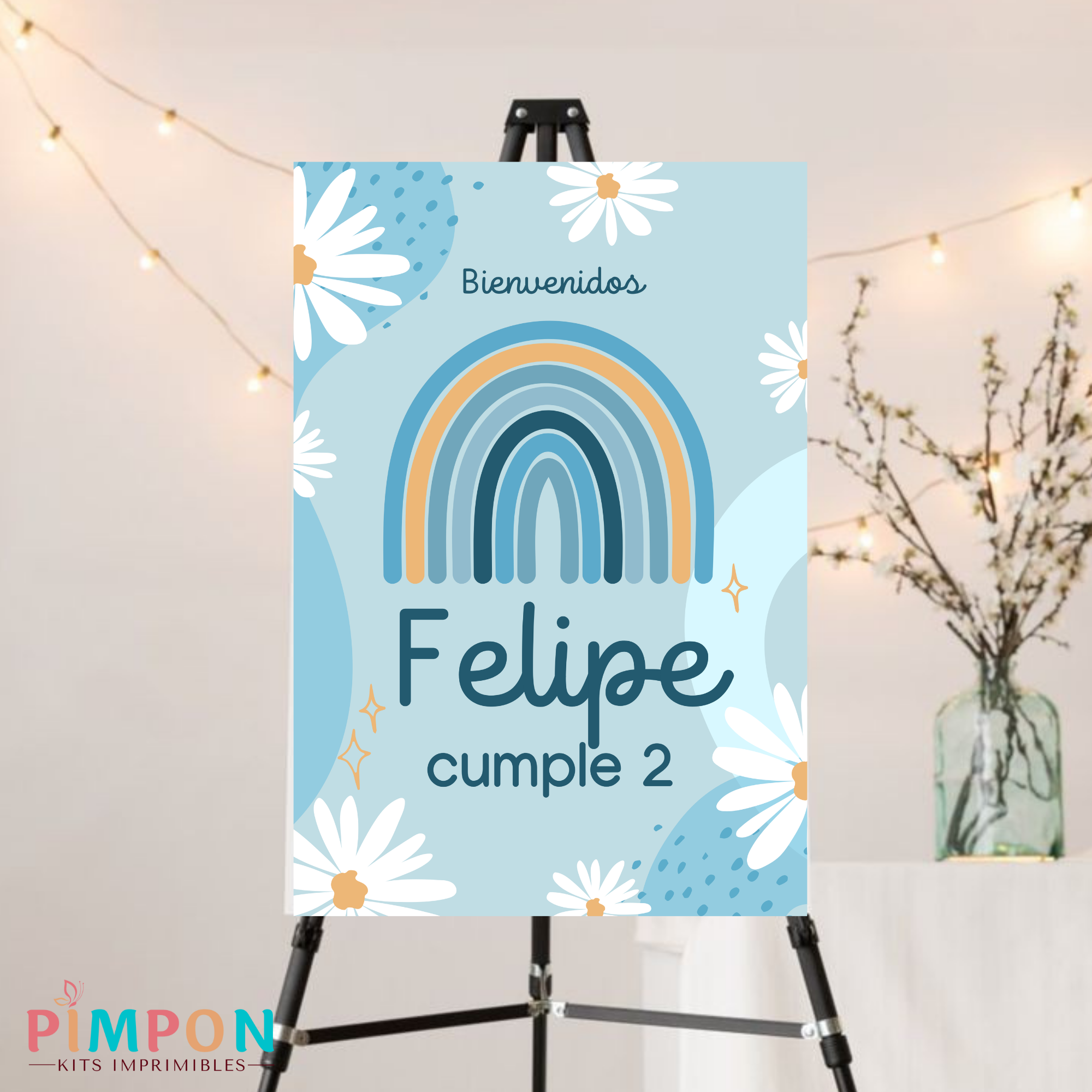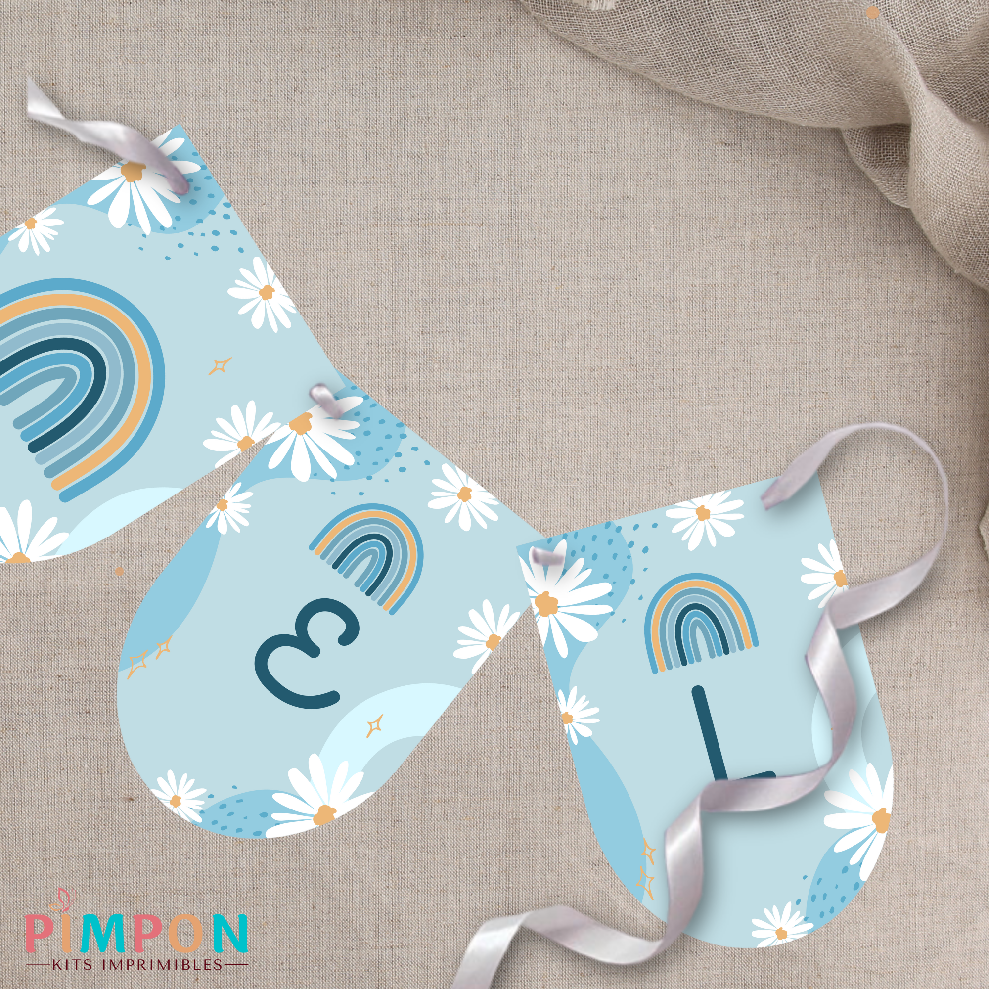 kit imprimible personalizado - ARCOIRIS Y MARGARITAS CELESTE