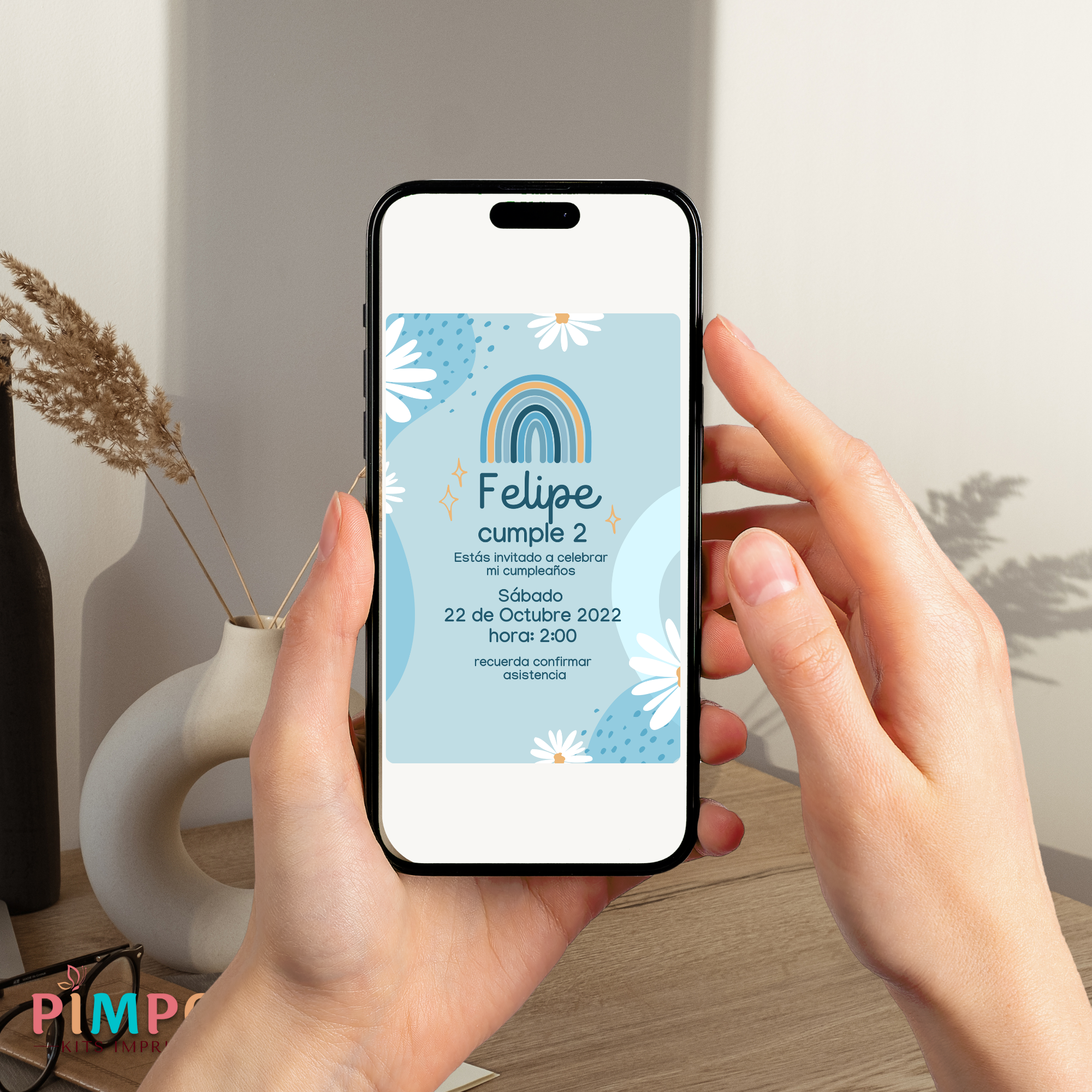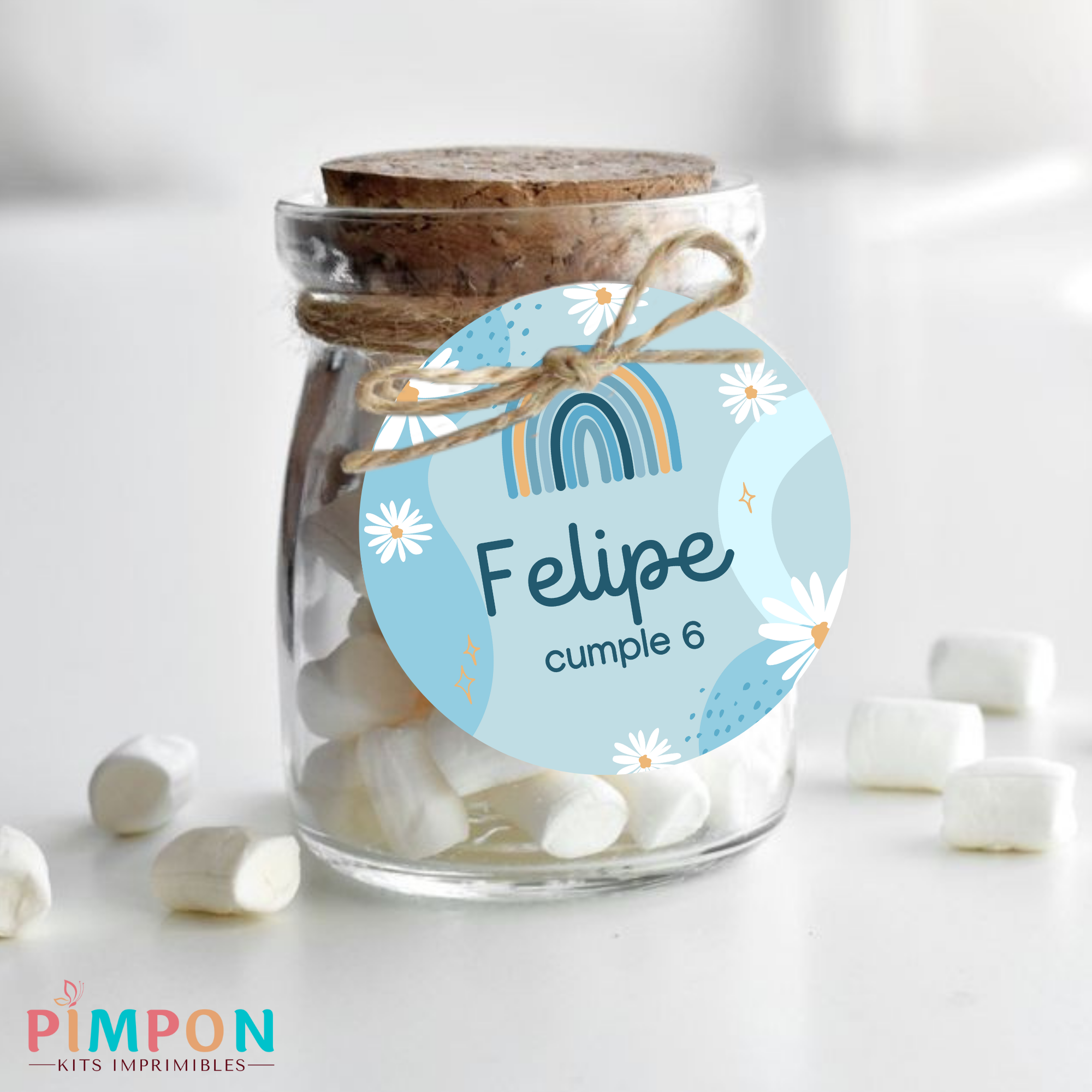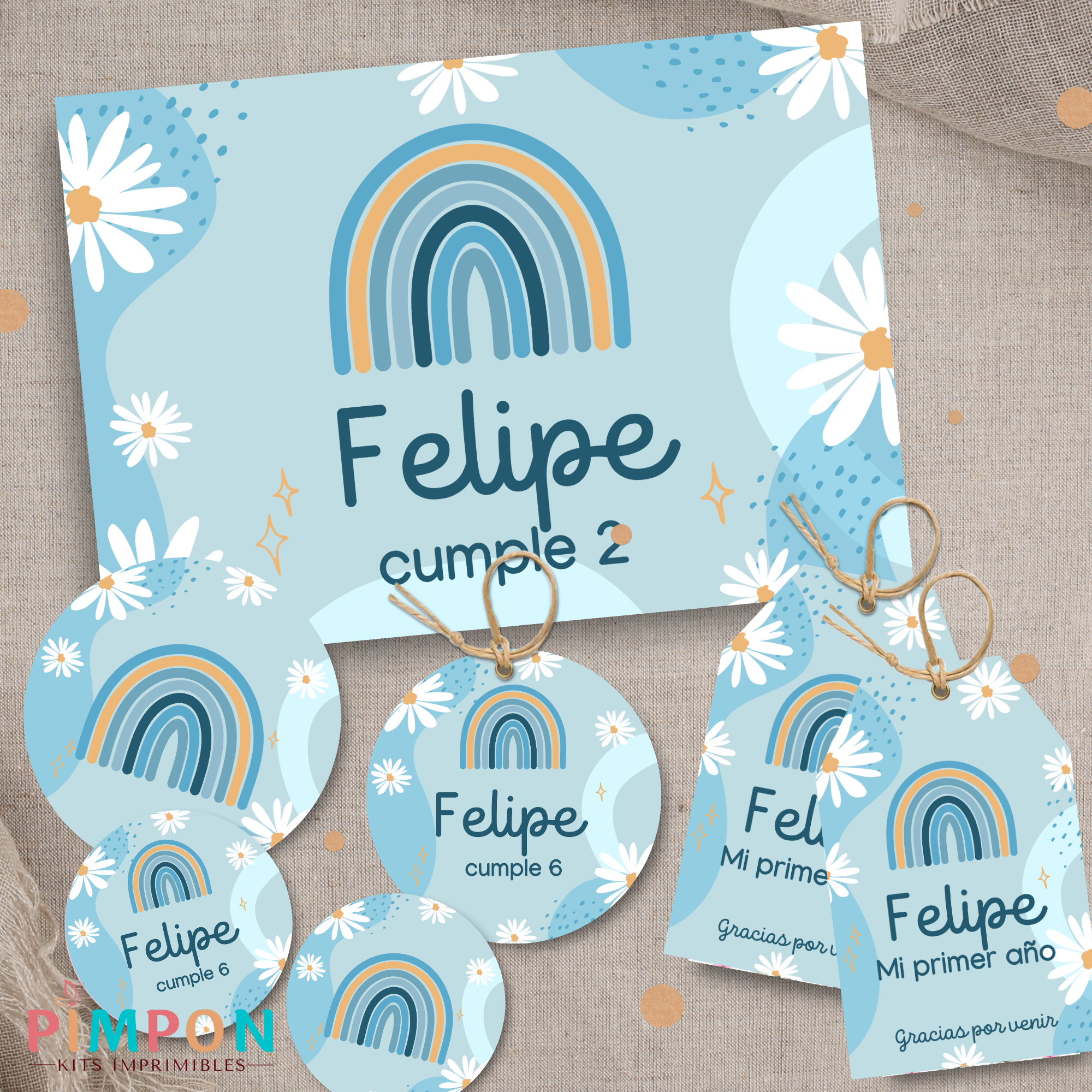 kit imprimible textos editables - ARCOIRIS Y MARGARITAS CELESTE
