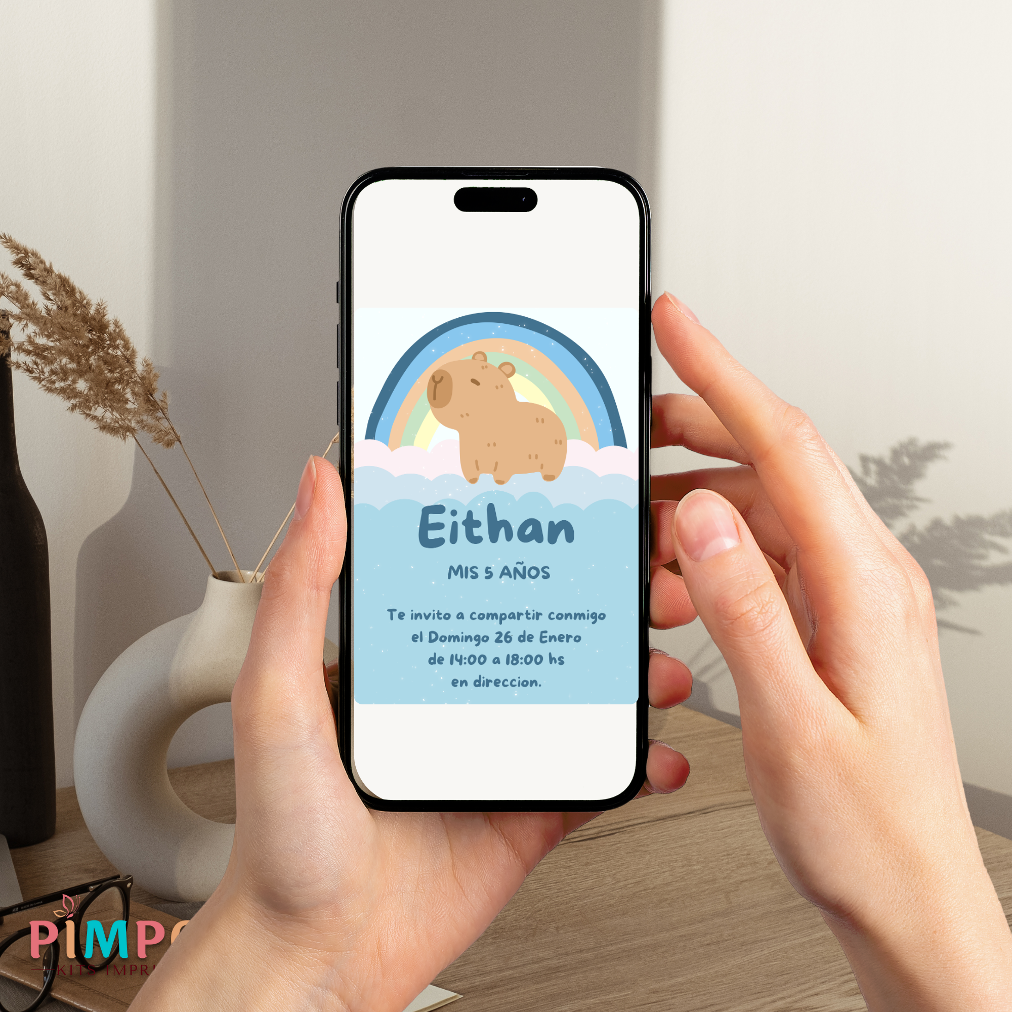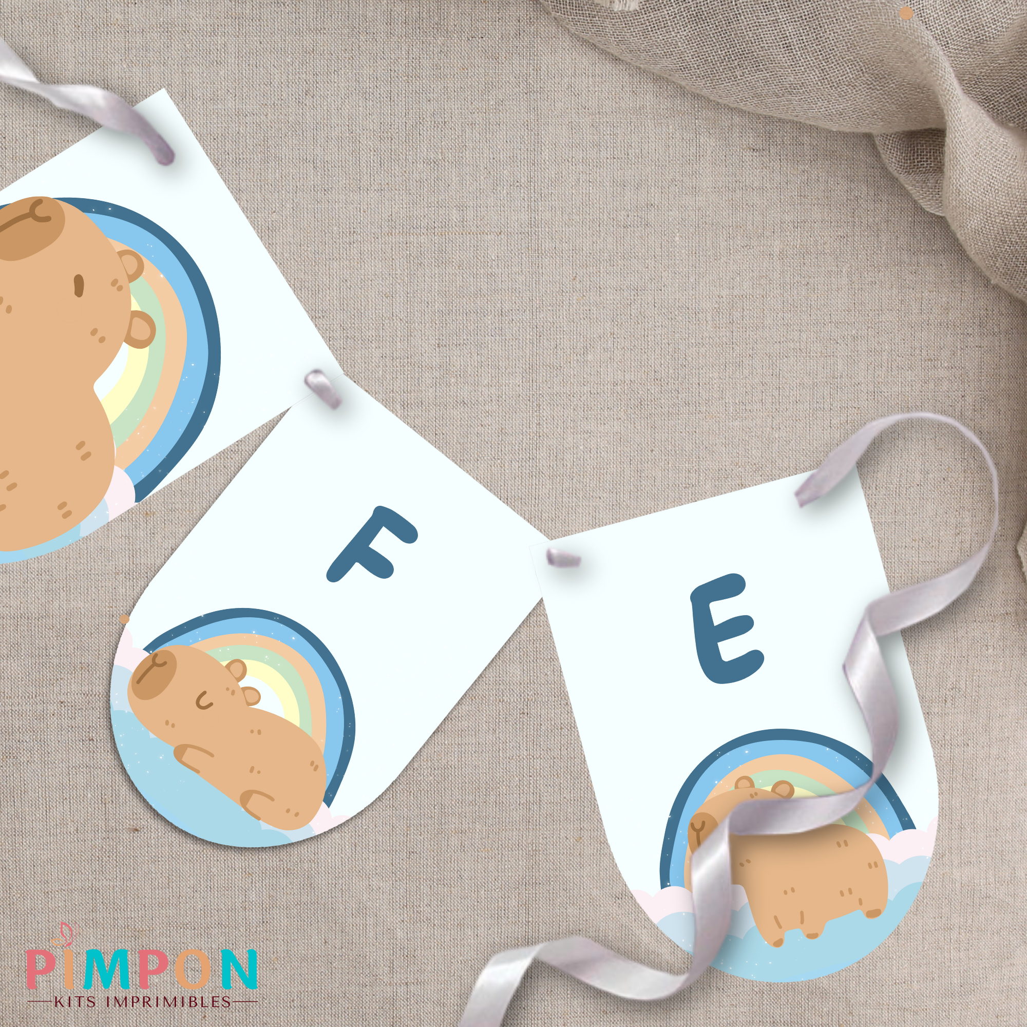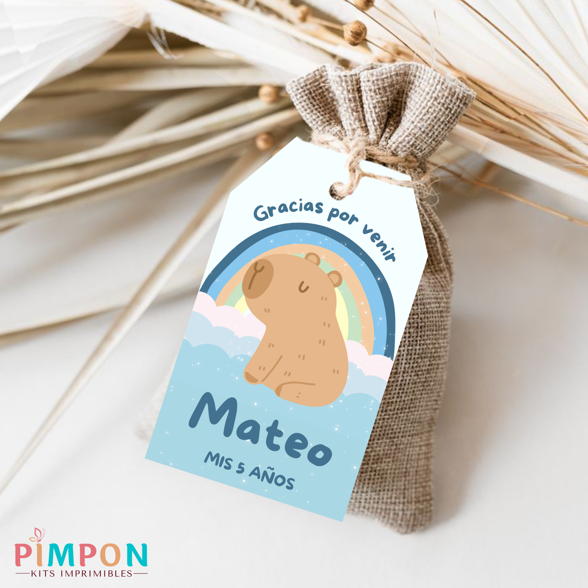 kit imprimible personalizado - CAPIBARA ARCOIRIS CELESTE