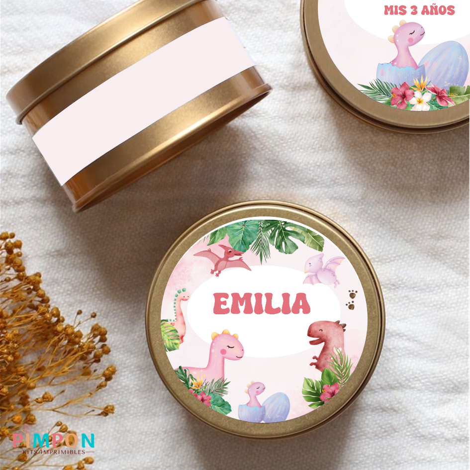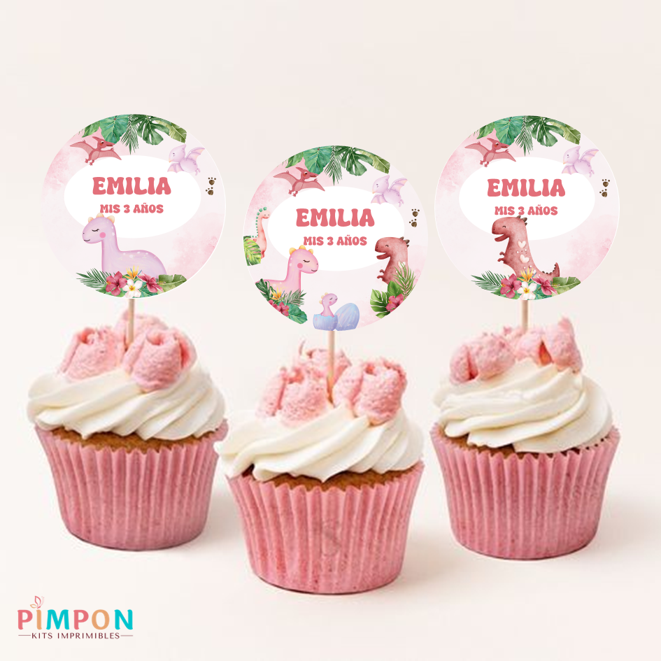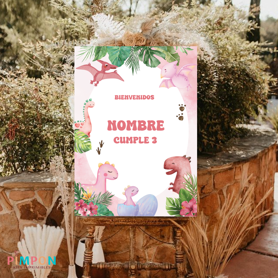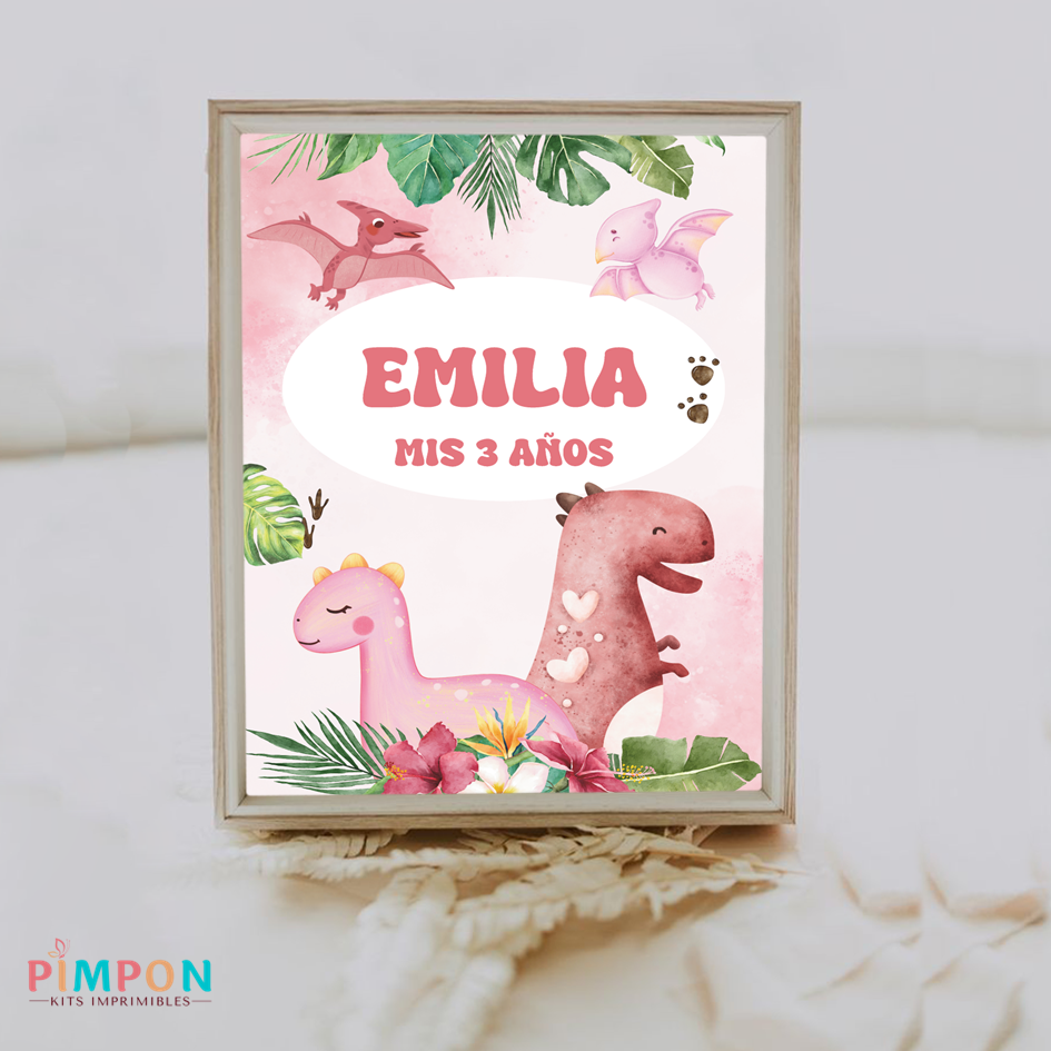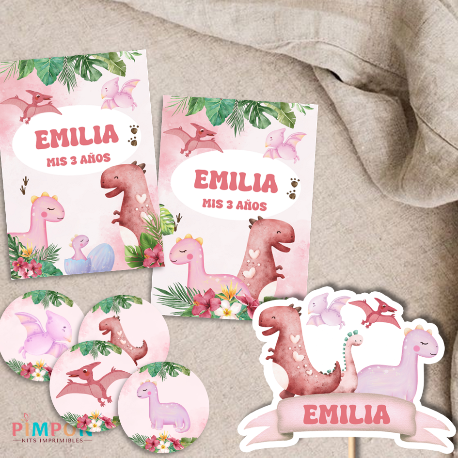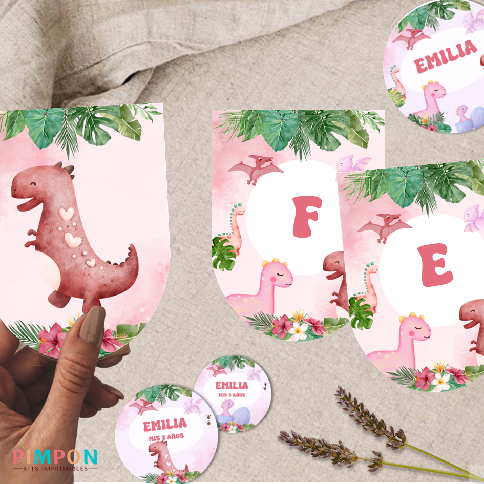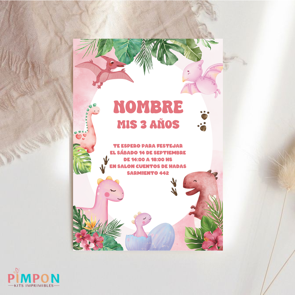 kit imprimible textos editables - DINOSAURIOS ACUARELA MOD. 2 ROSA