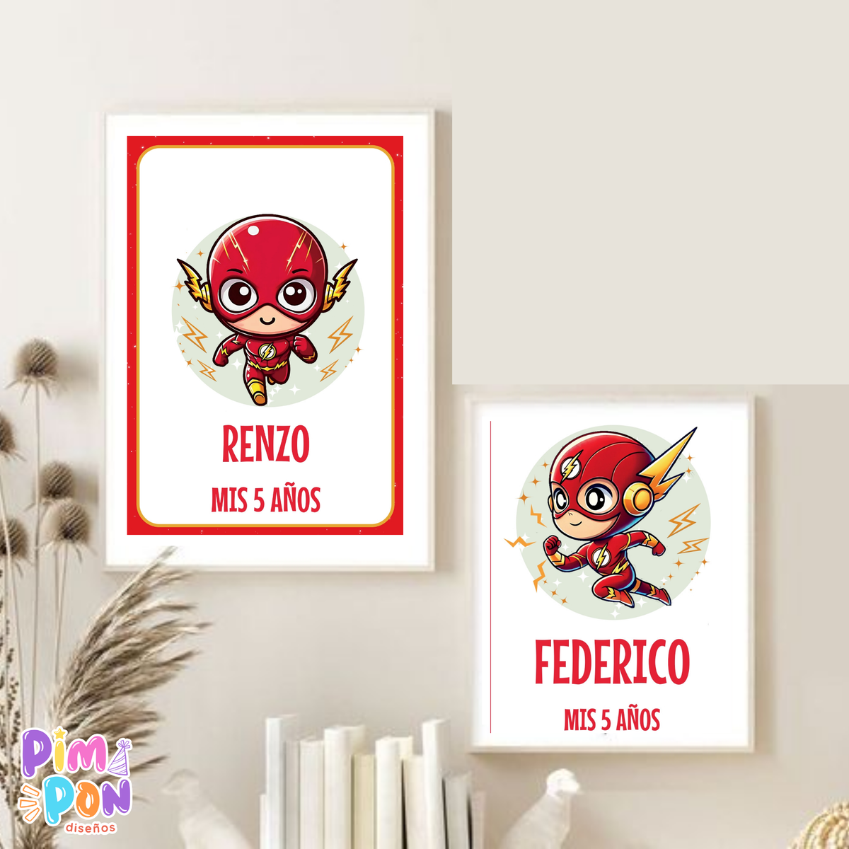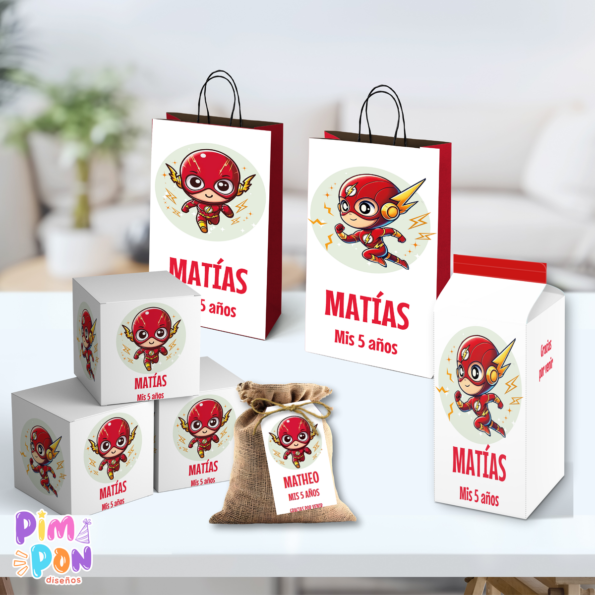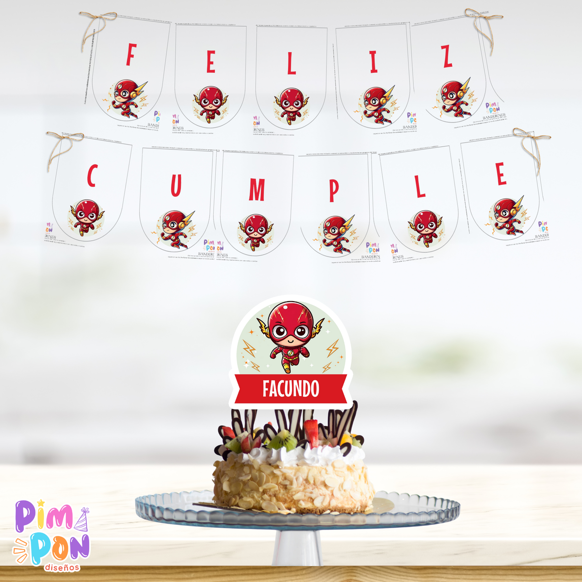 kit imprimible textos editables - SUPERHÉROES - FLASH CHIBI