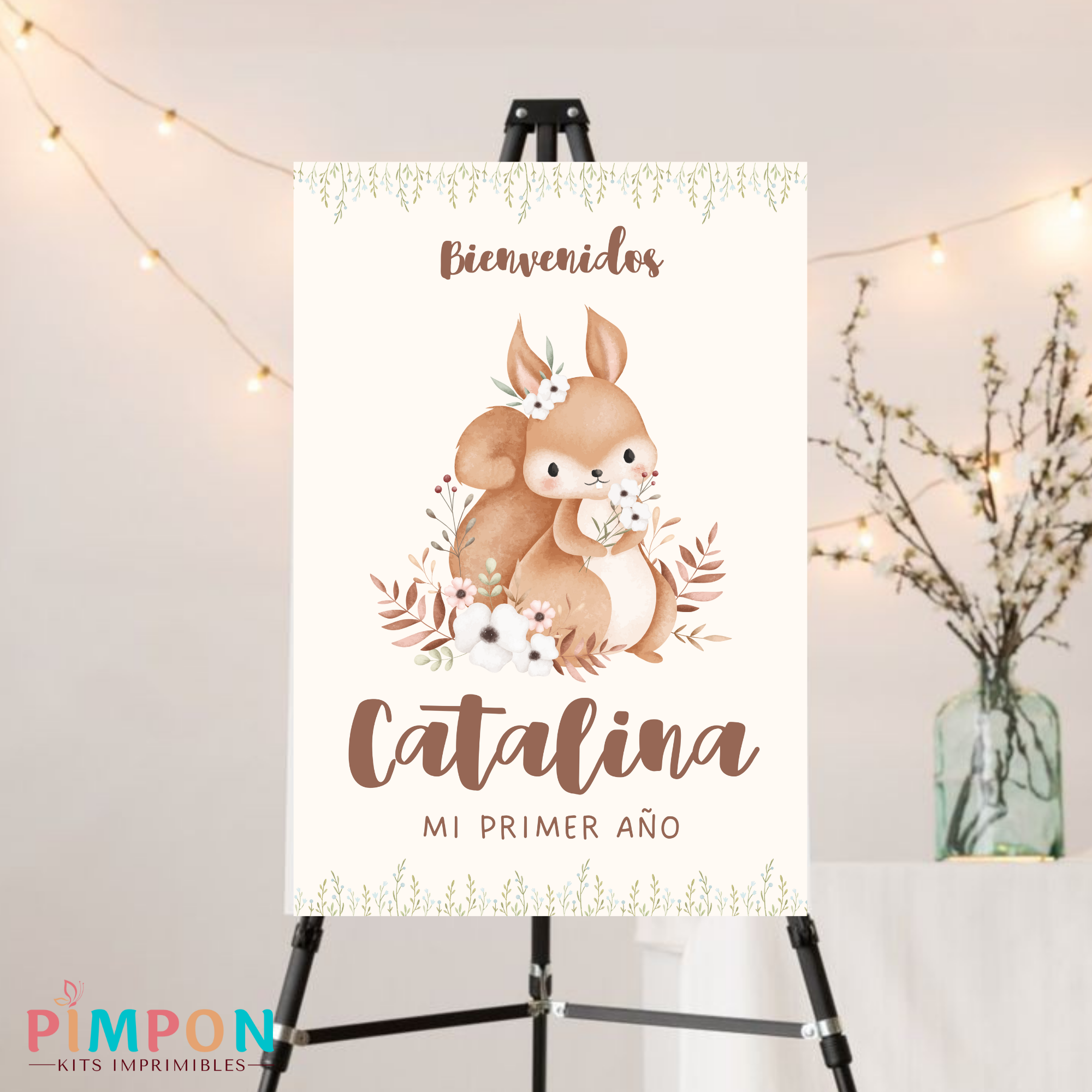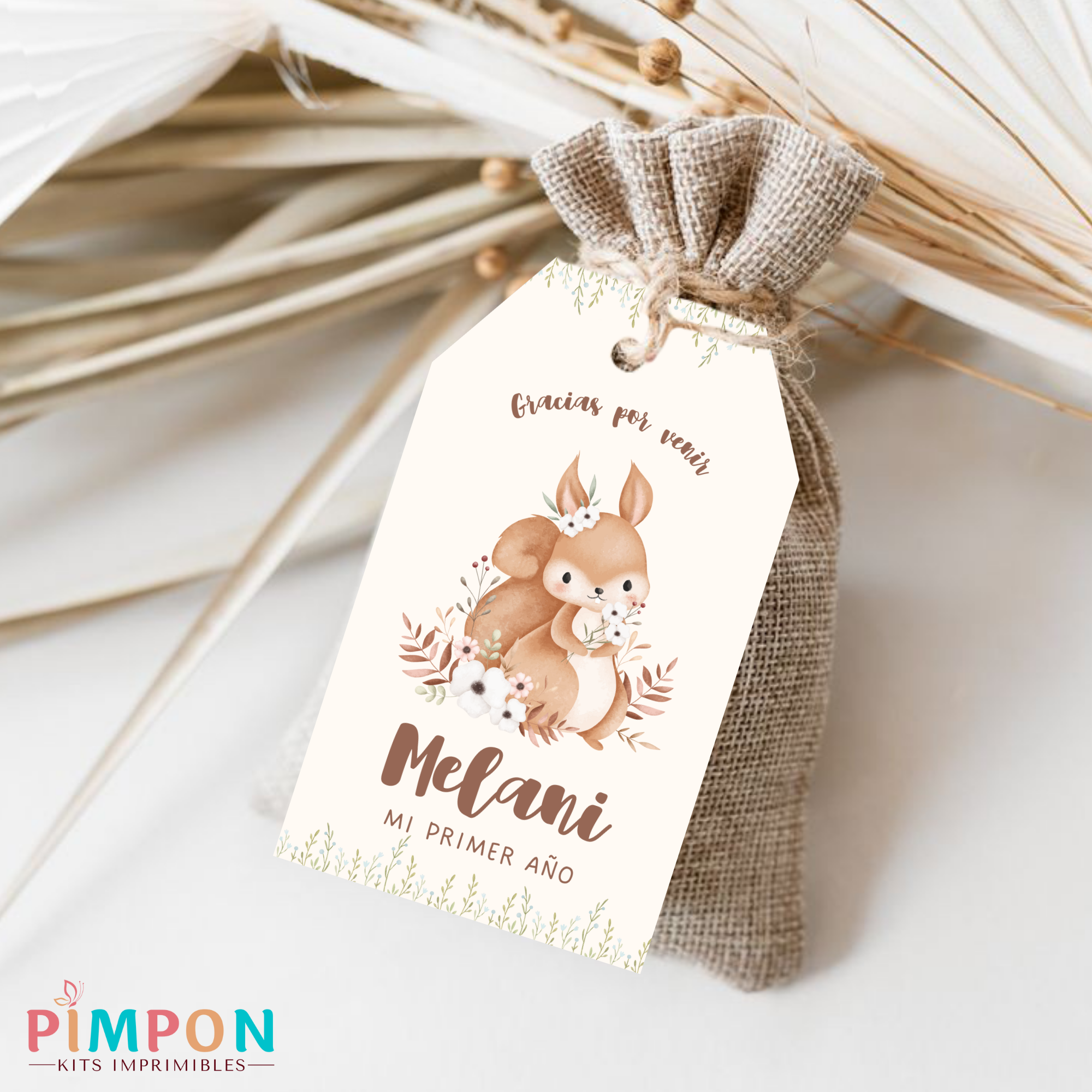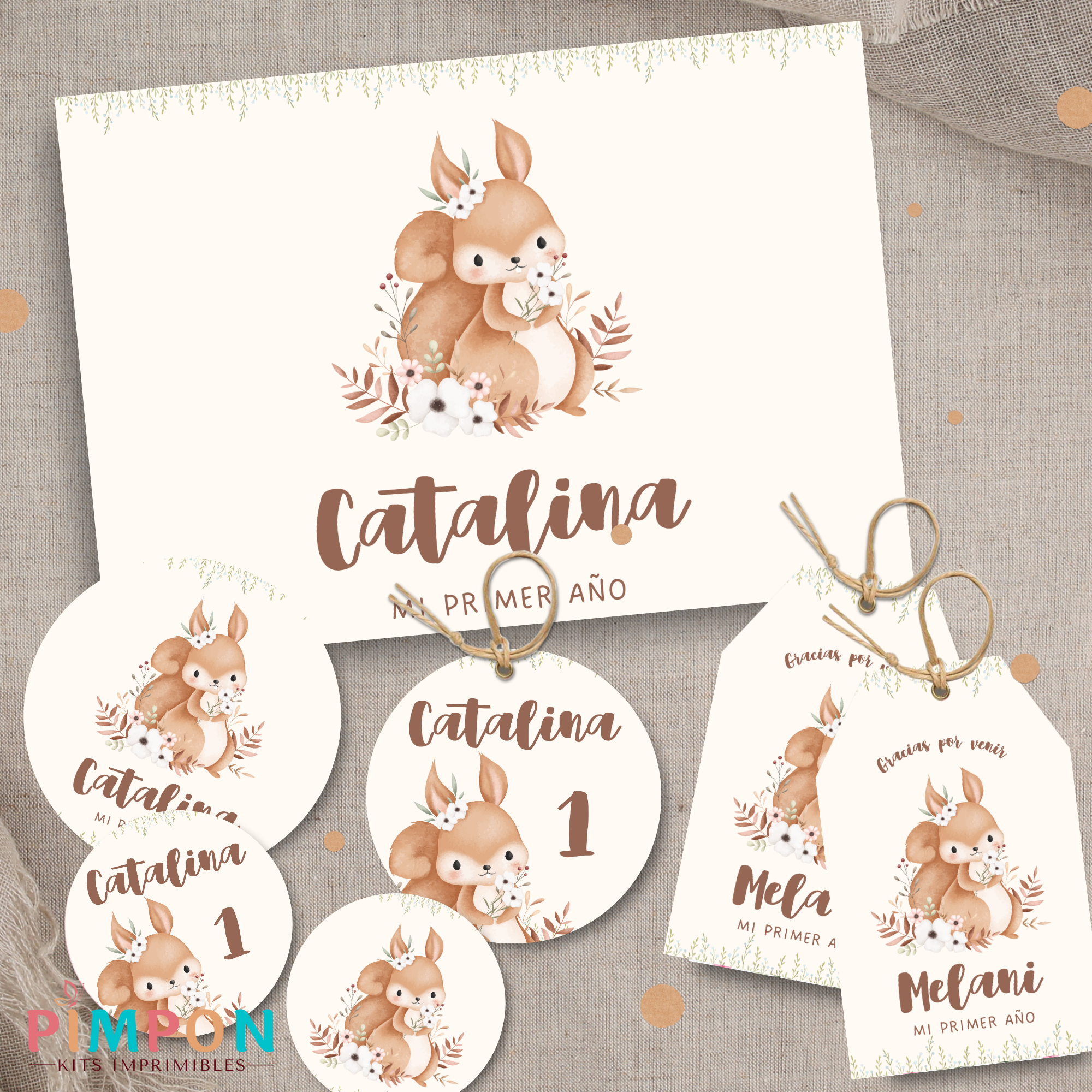 kit imprimible personalizado - ANIMALITOS - FLORAL ARDILLA