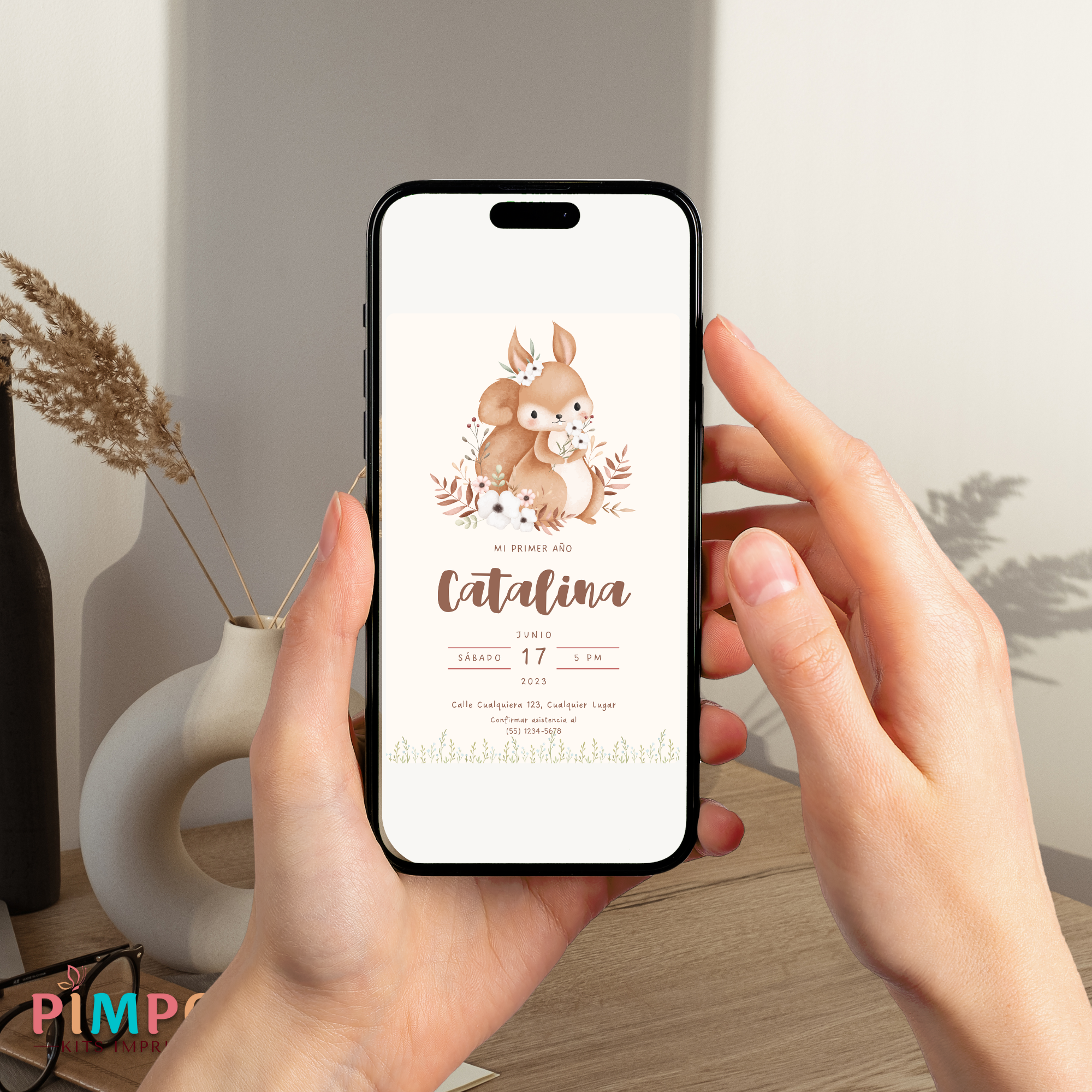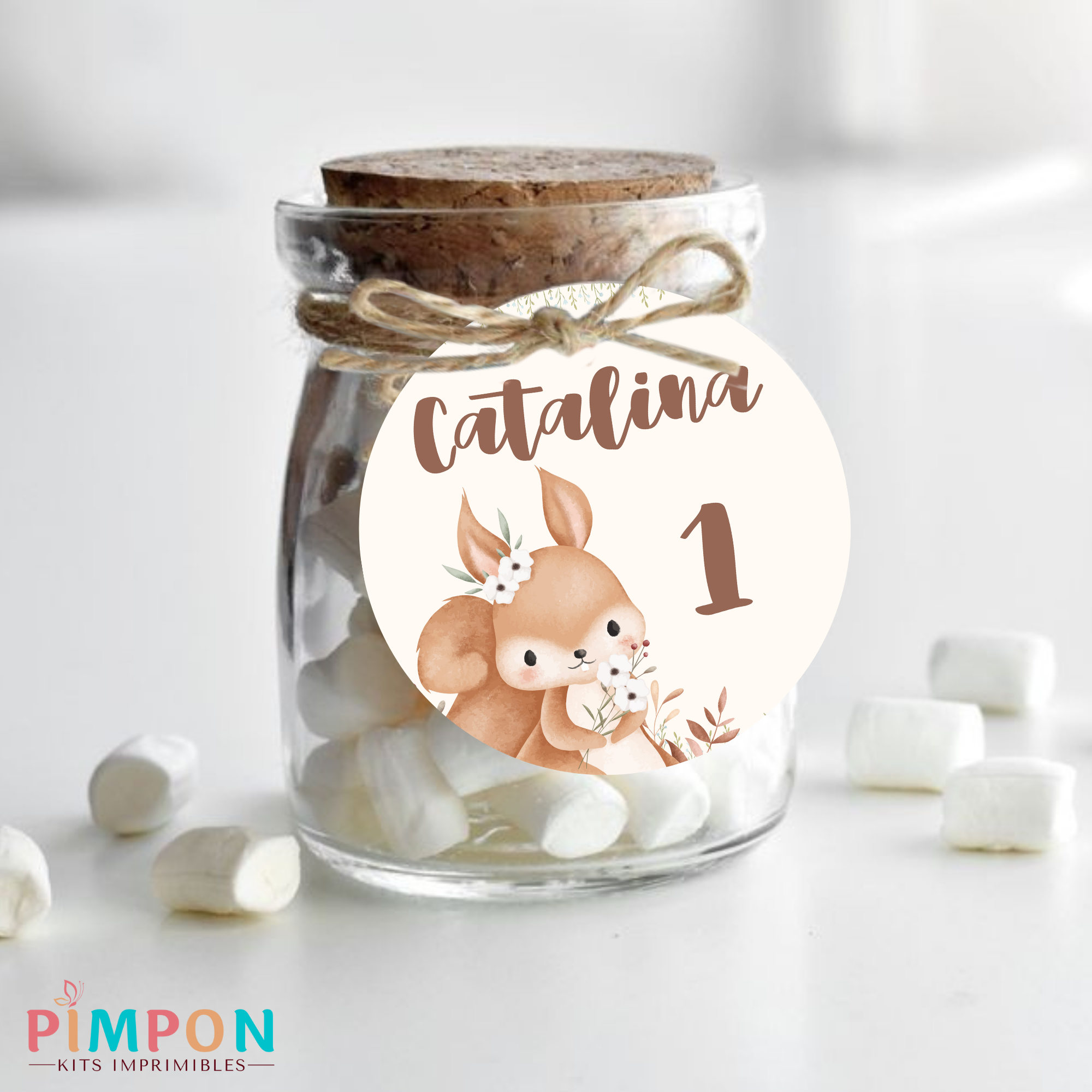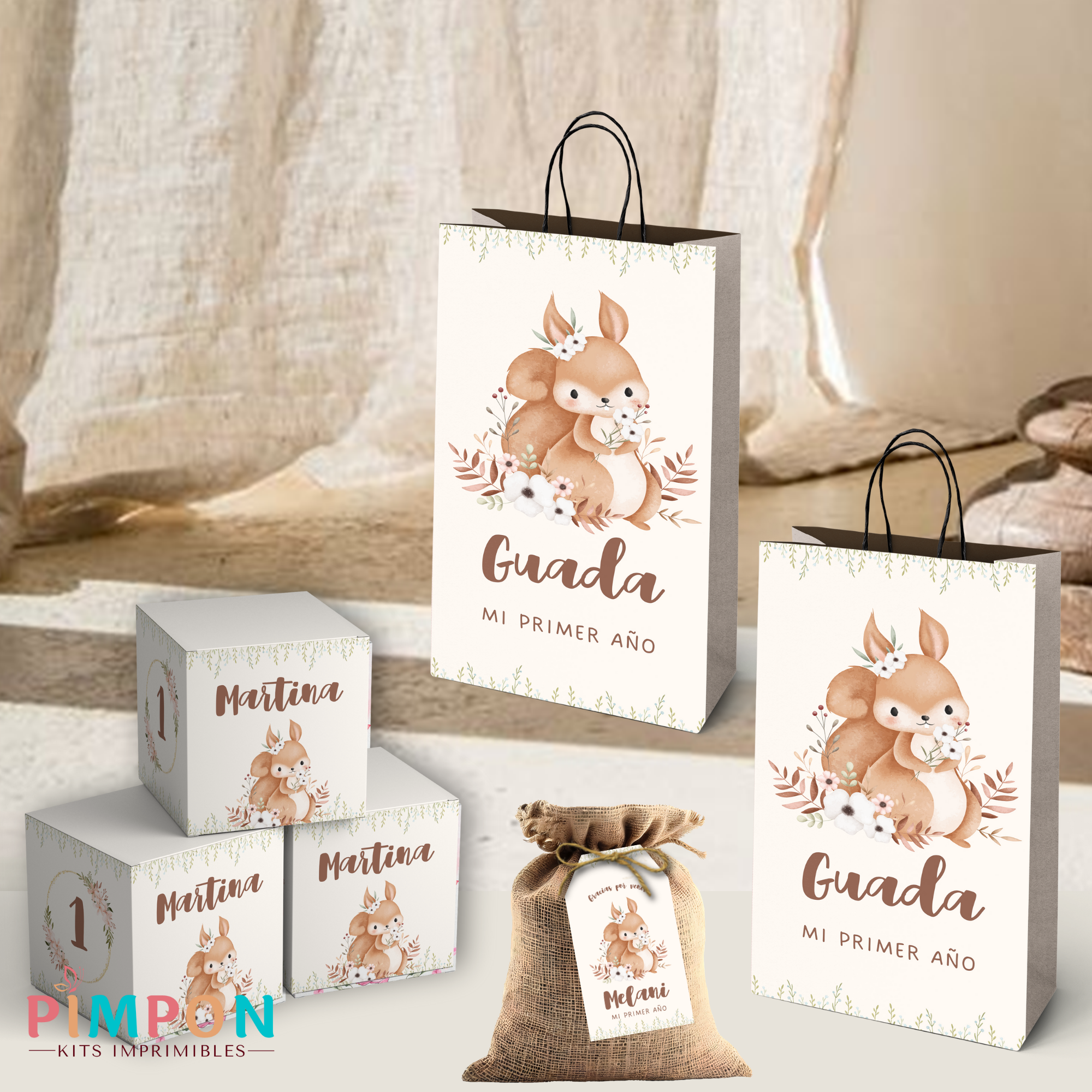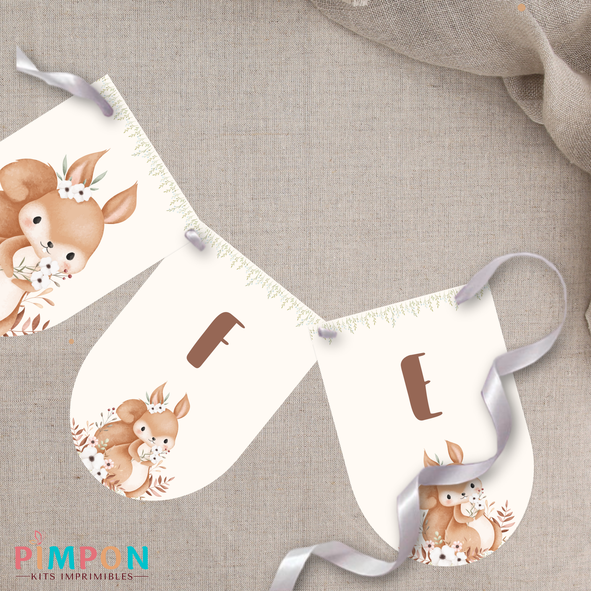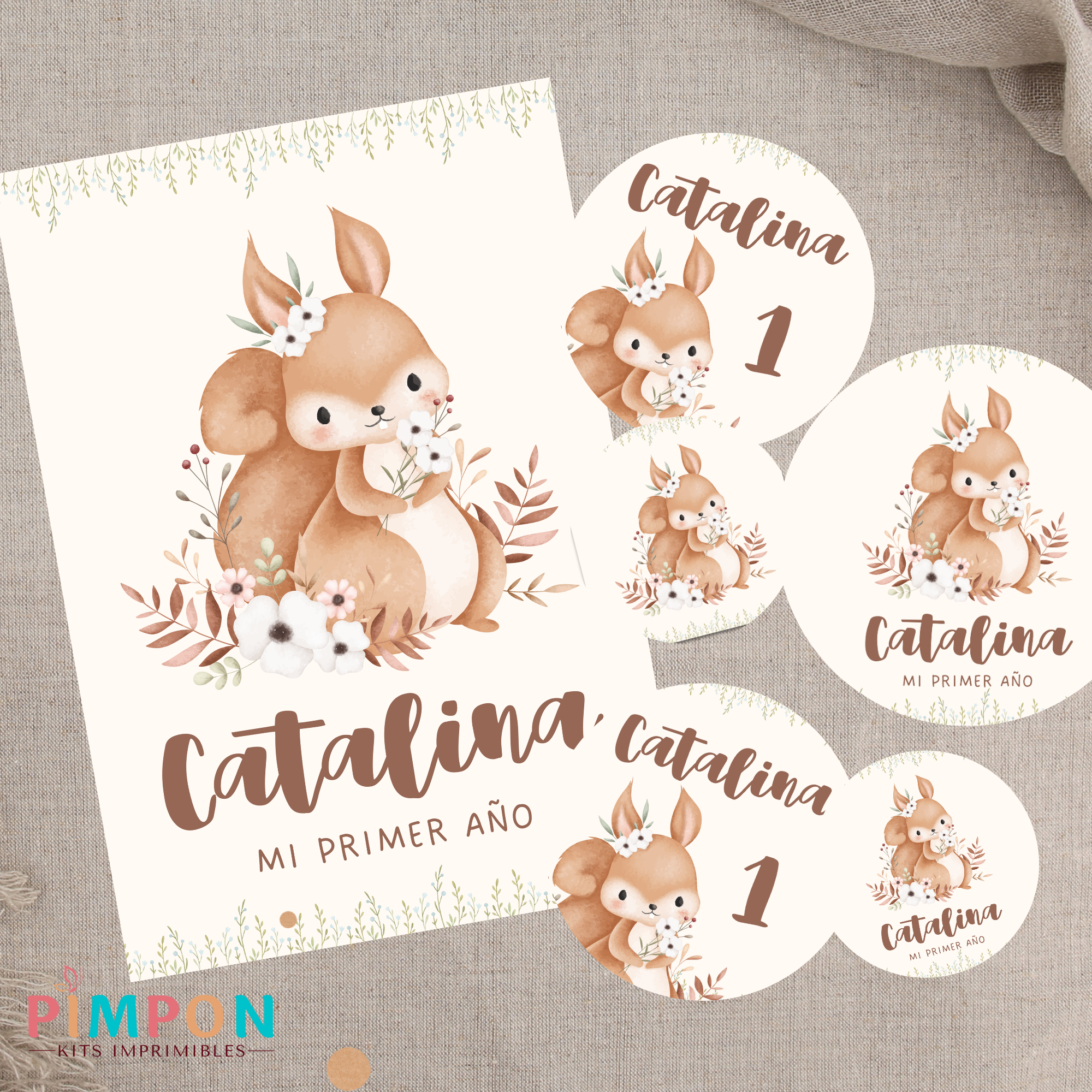 kit imprimible textos editables - ANIMALITOS - FLORAL ARDILLA
