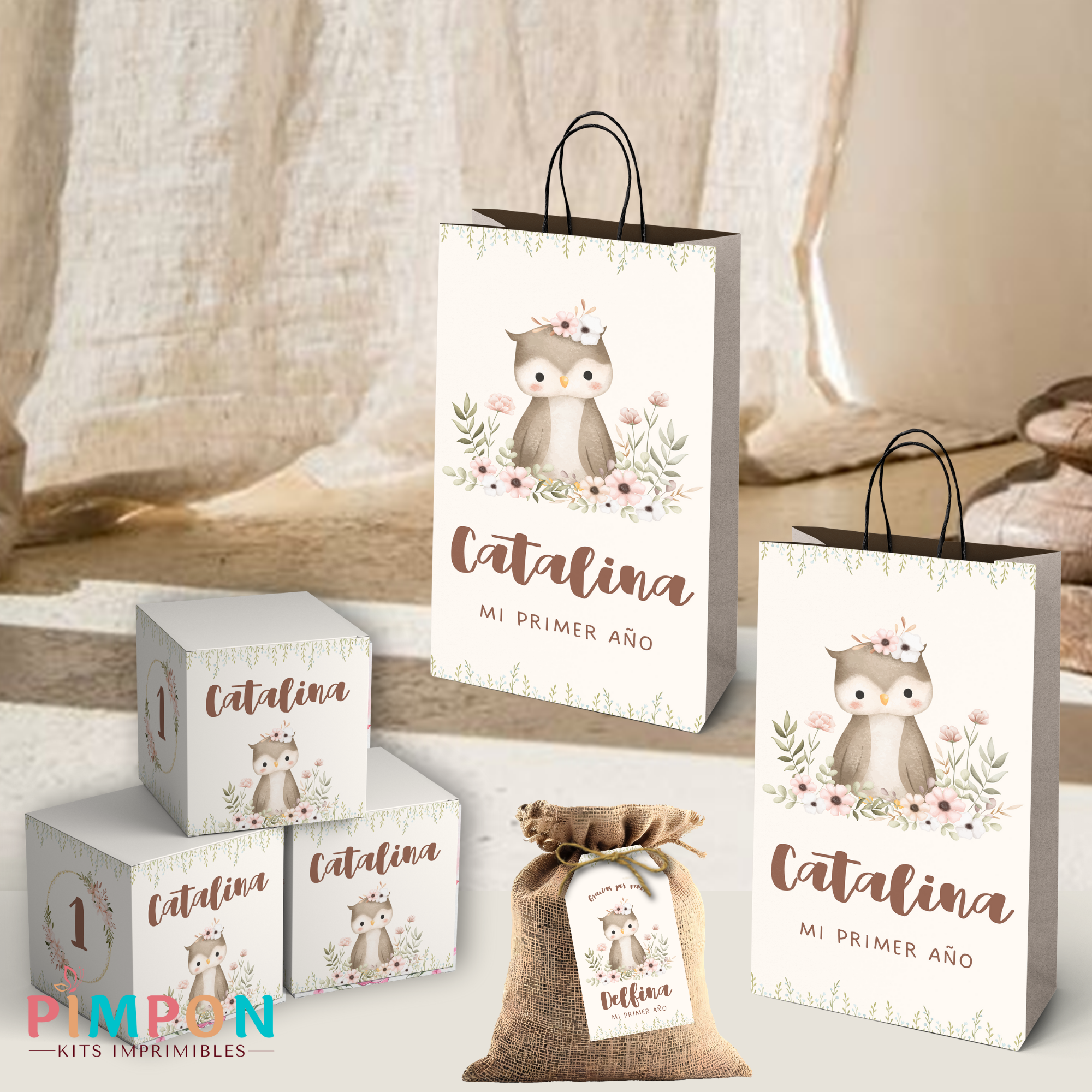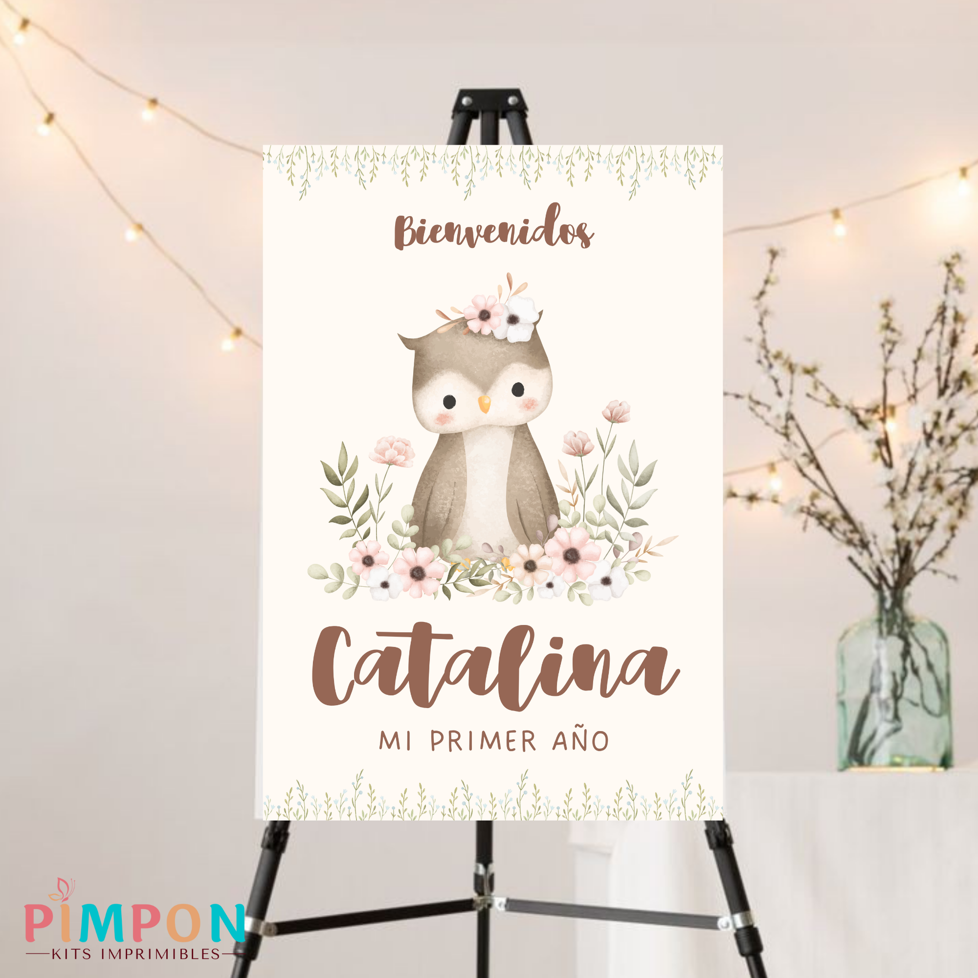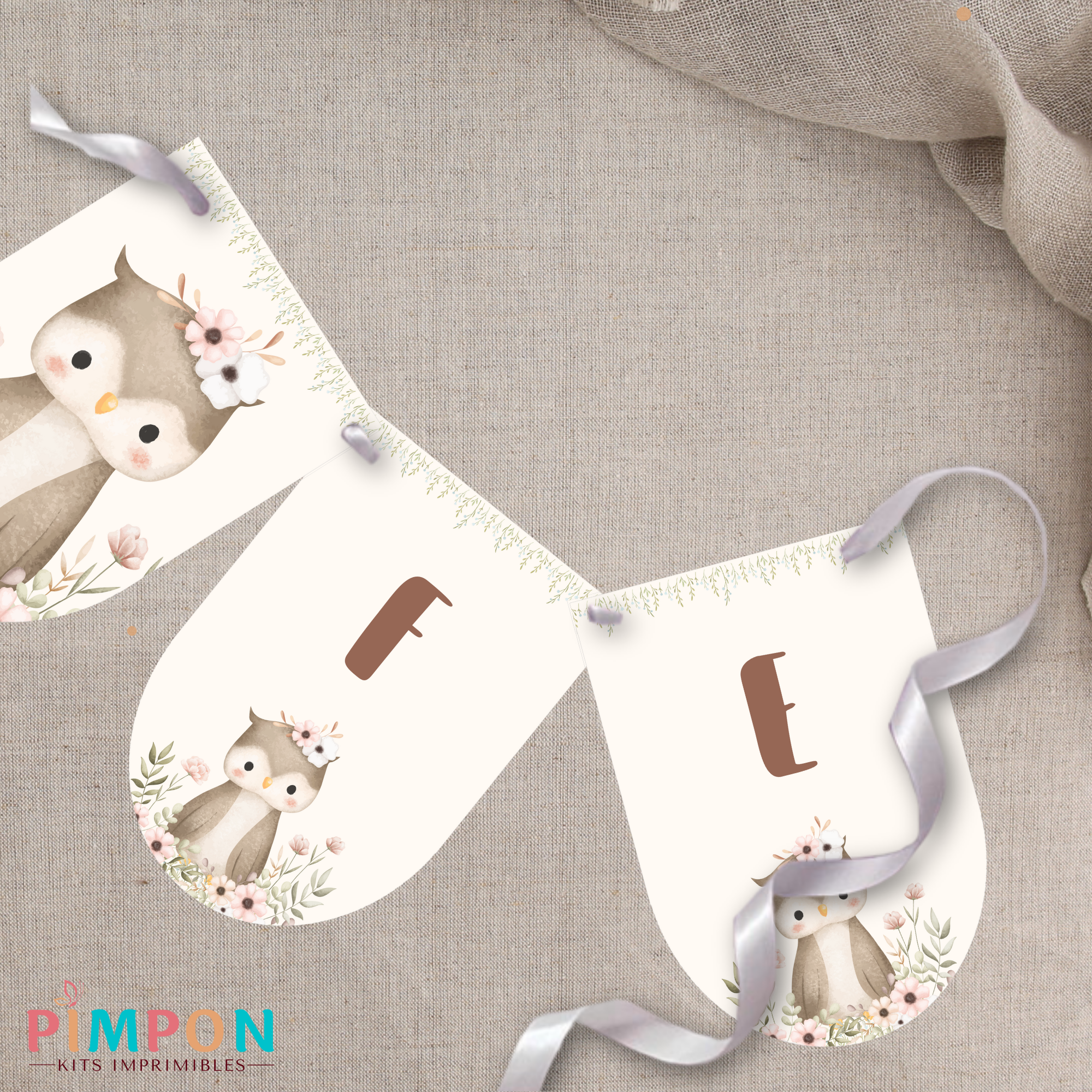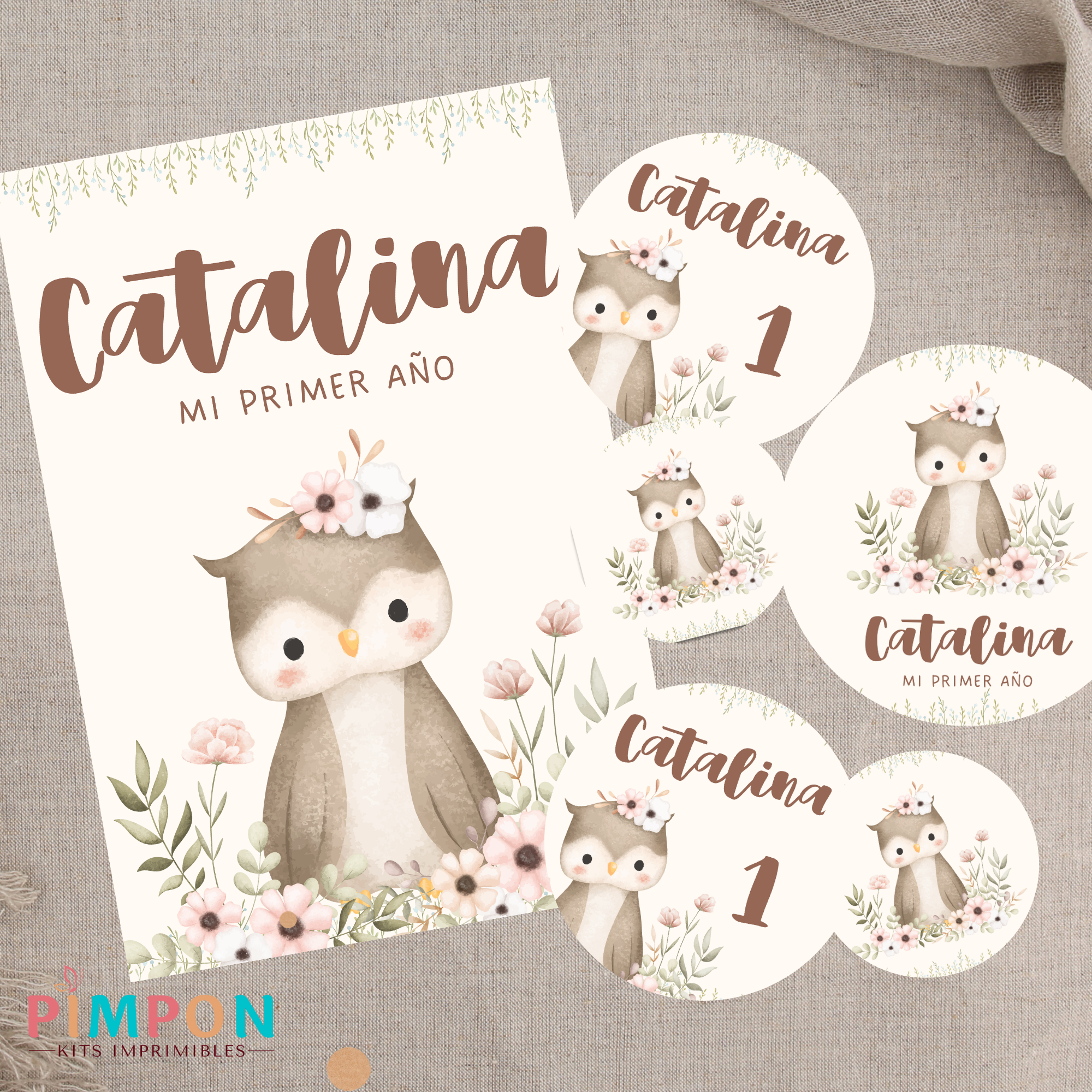 kit imprimible personalizado - ANIMALITOS - FLORAL BUHO