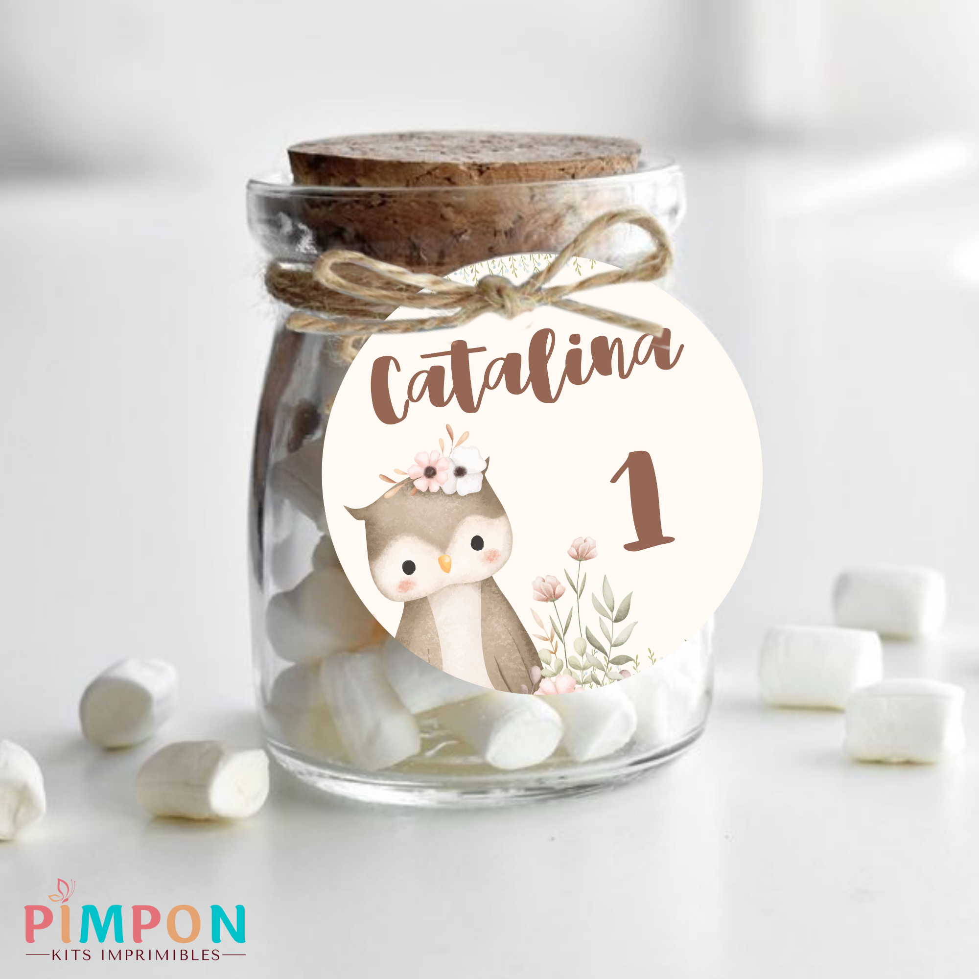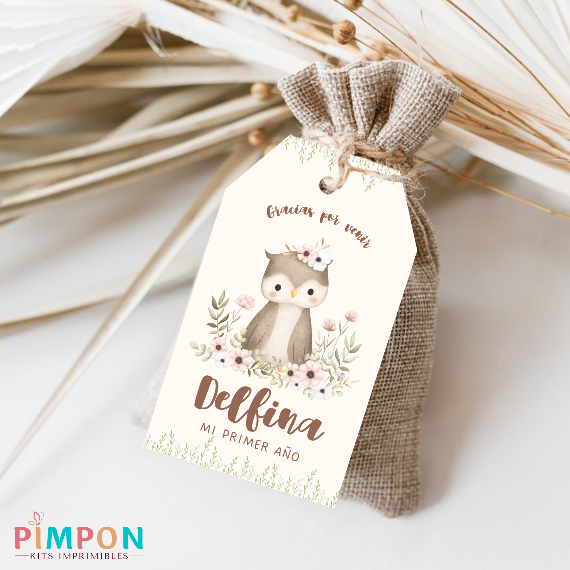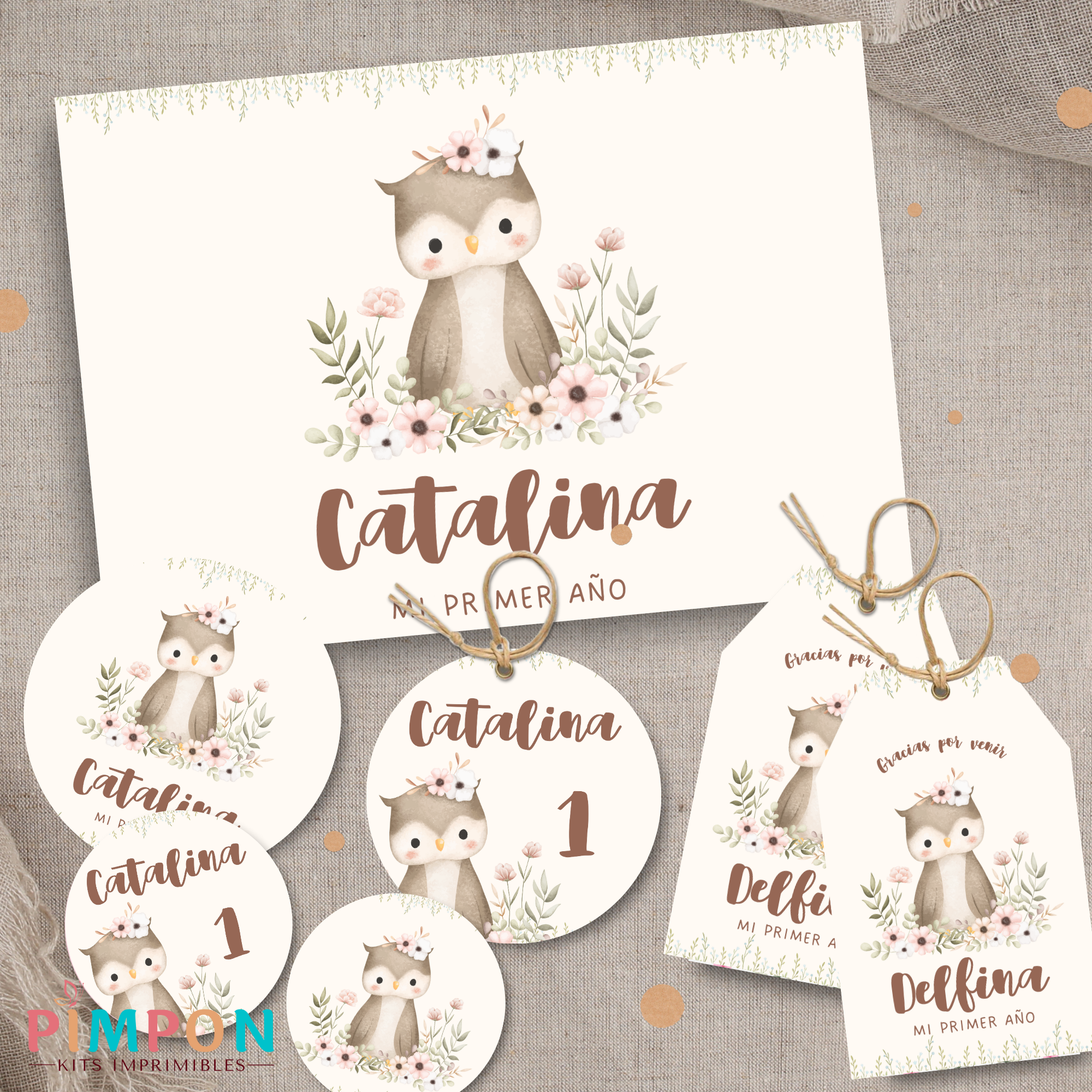 kit imprimible textos editables - ANIMALITOS - FLORAL BUHO