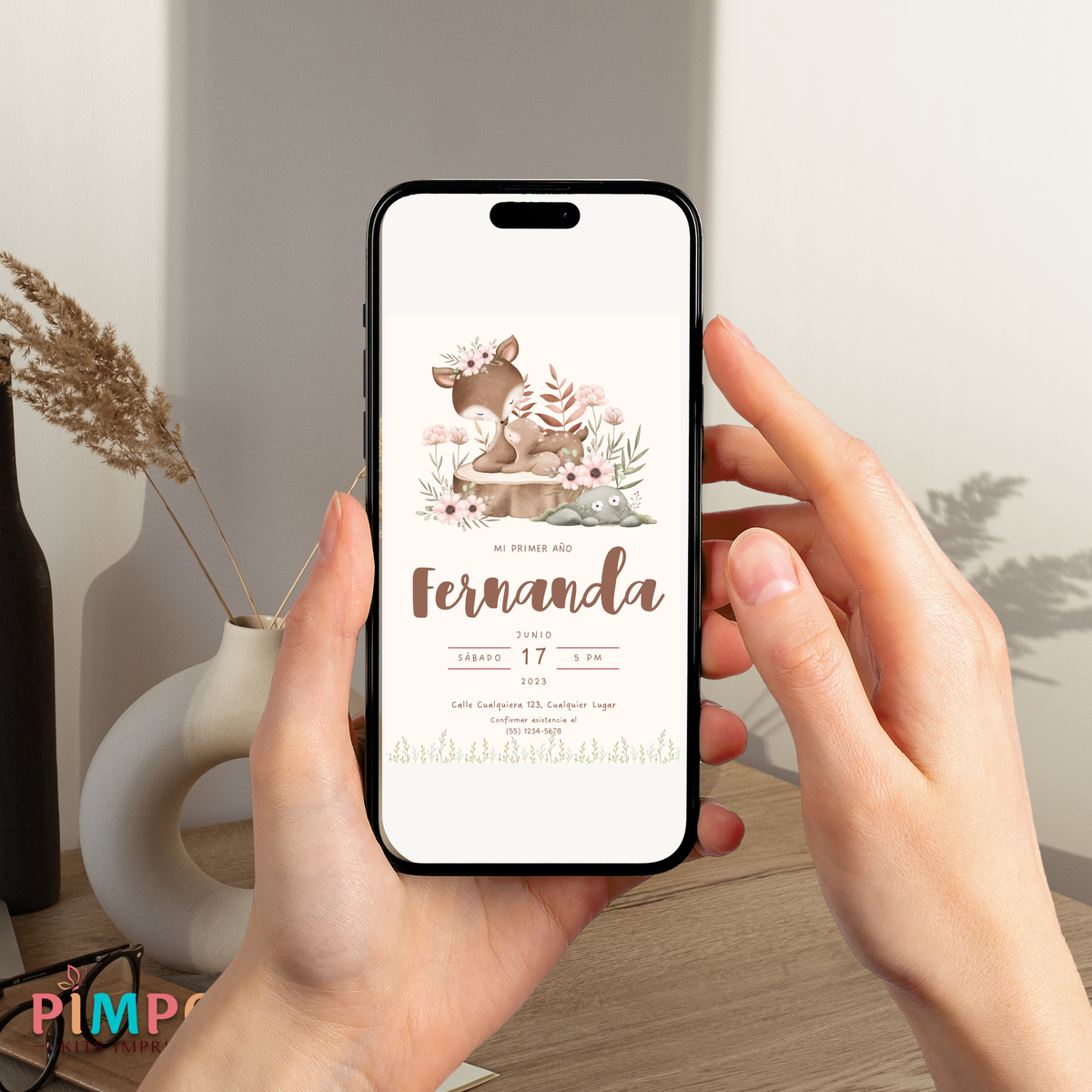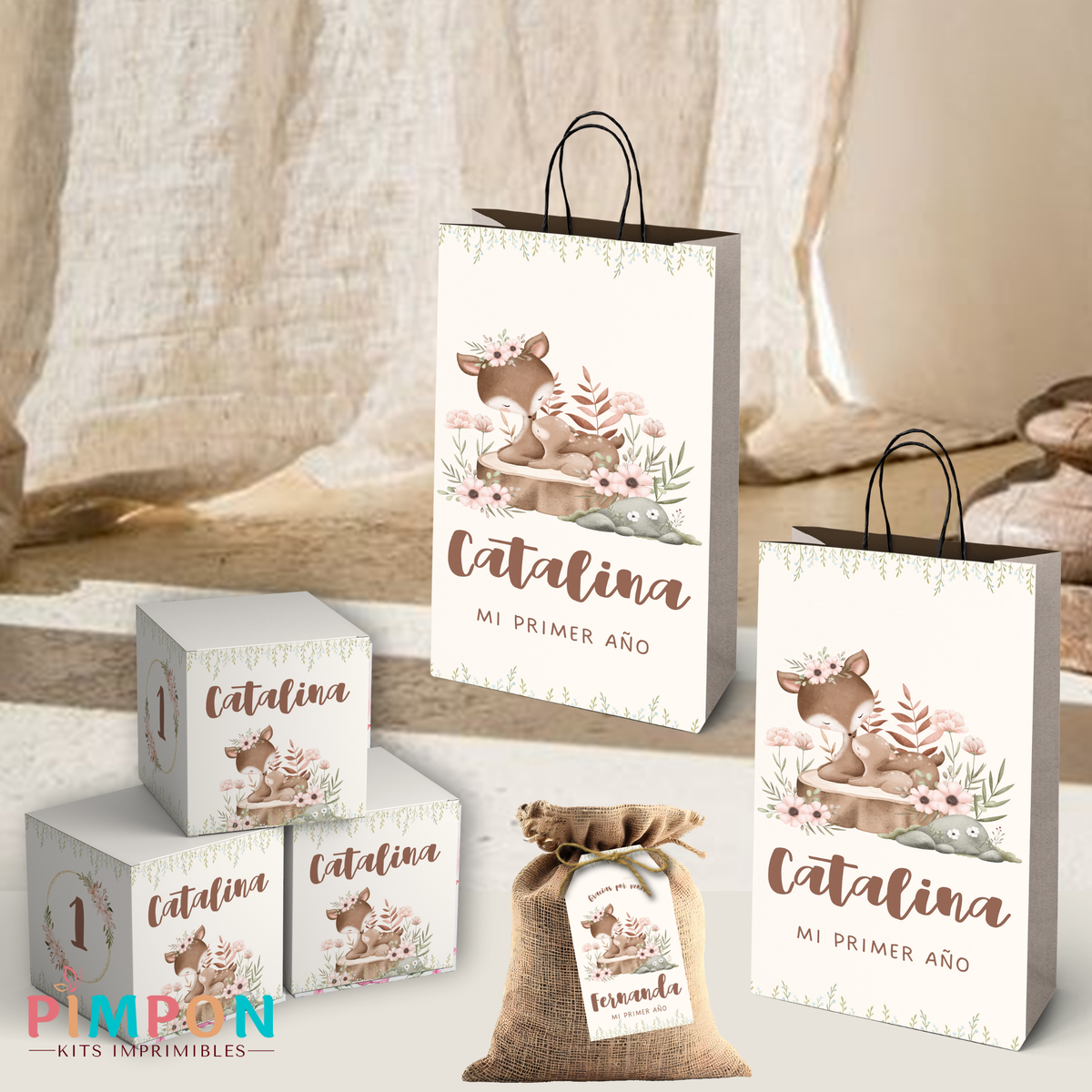 kit imprimible personalizado - ANIMALITOS - FLORAL CIERVO