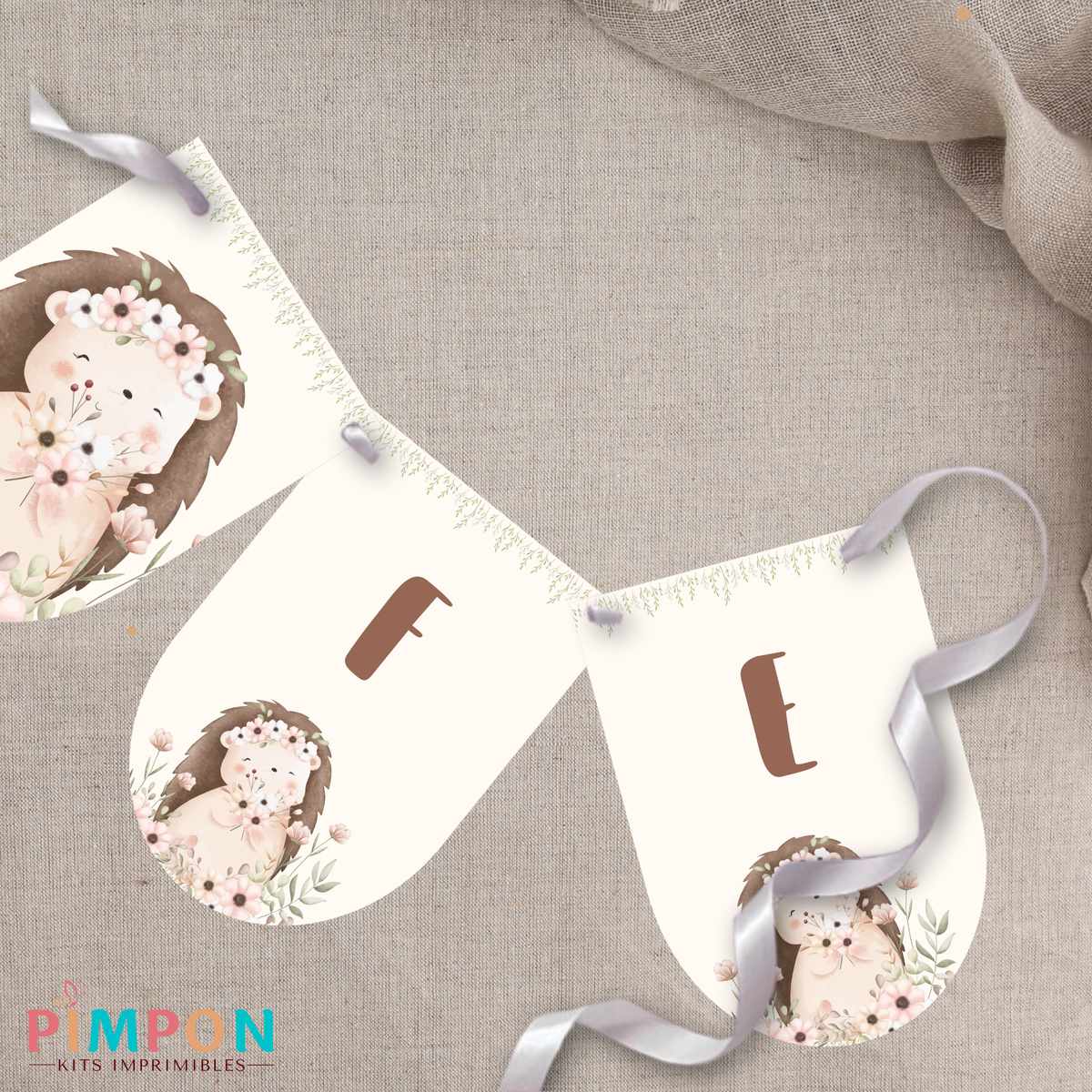 kit imprimible personalizado - ANIMALITOS - FLORAL PUERCOESPIN