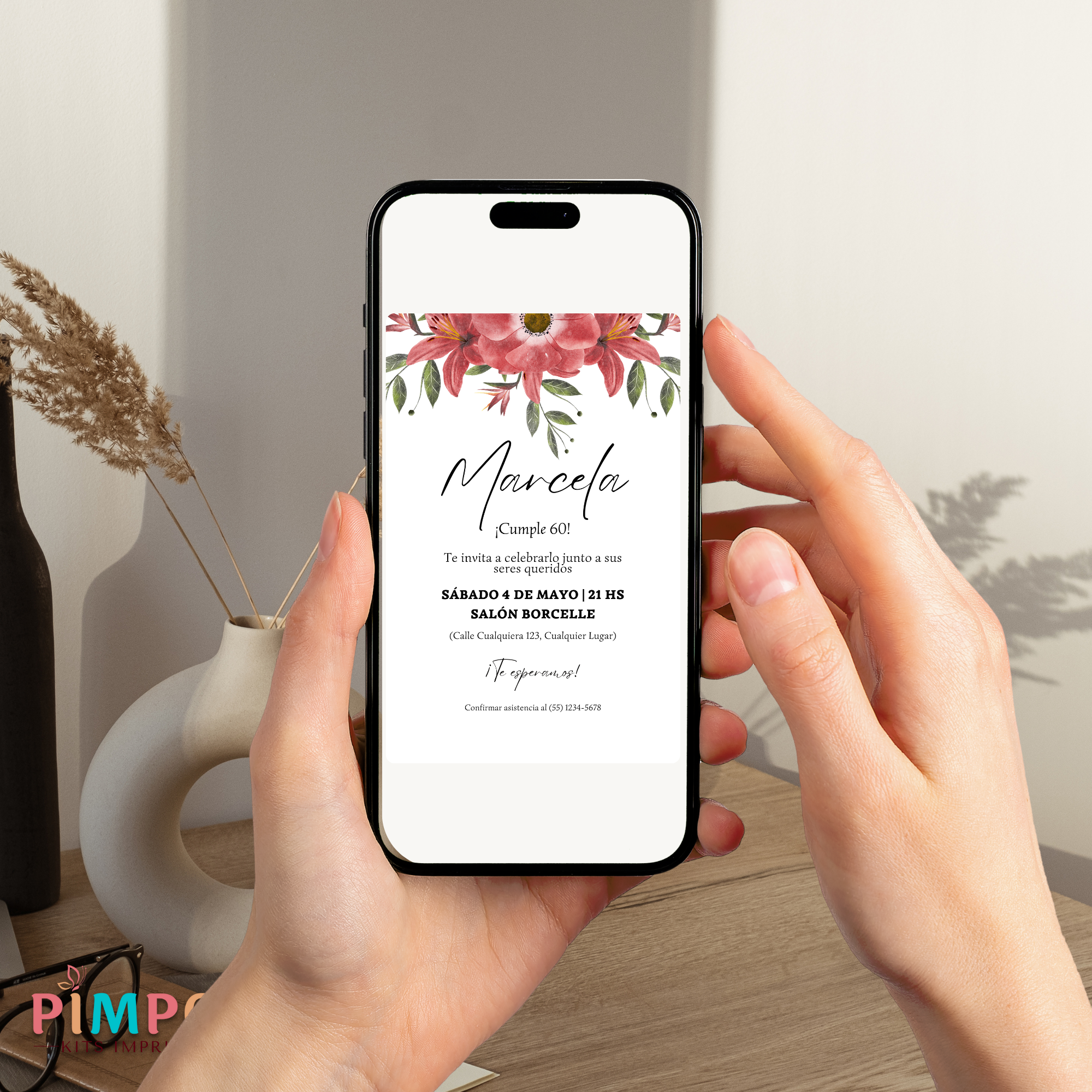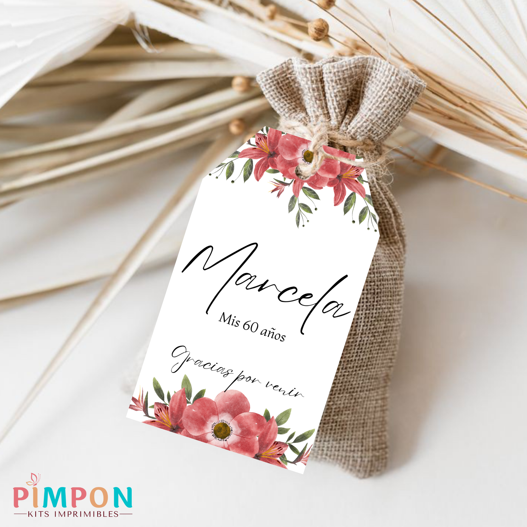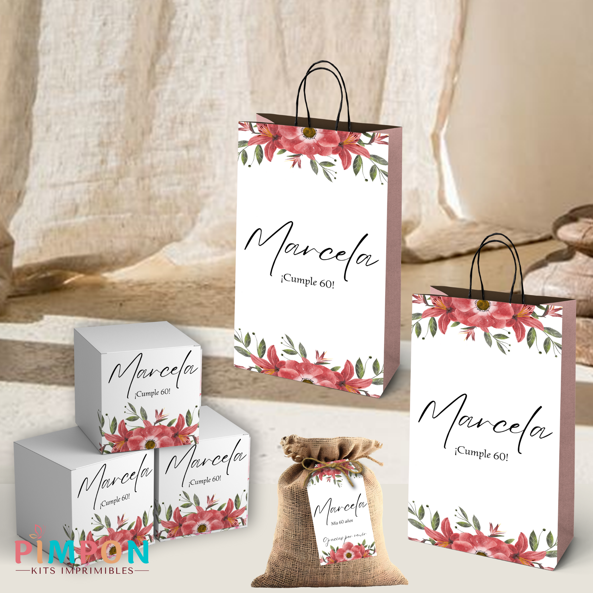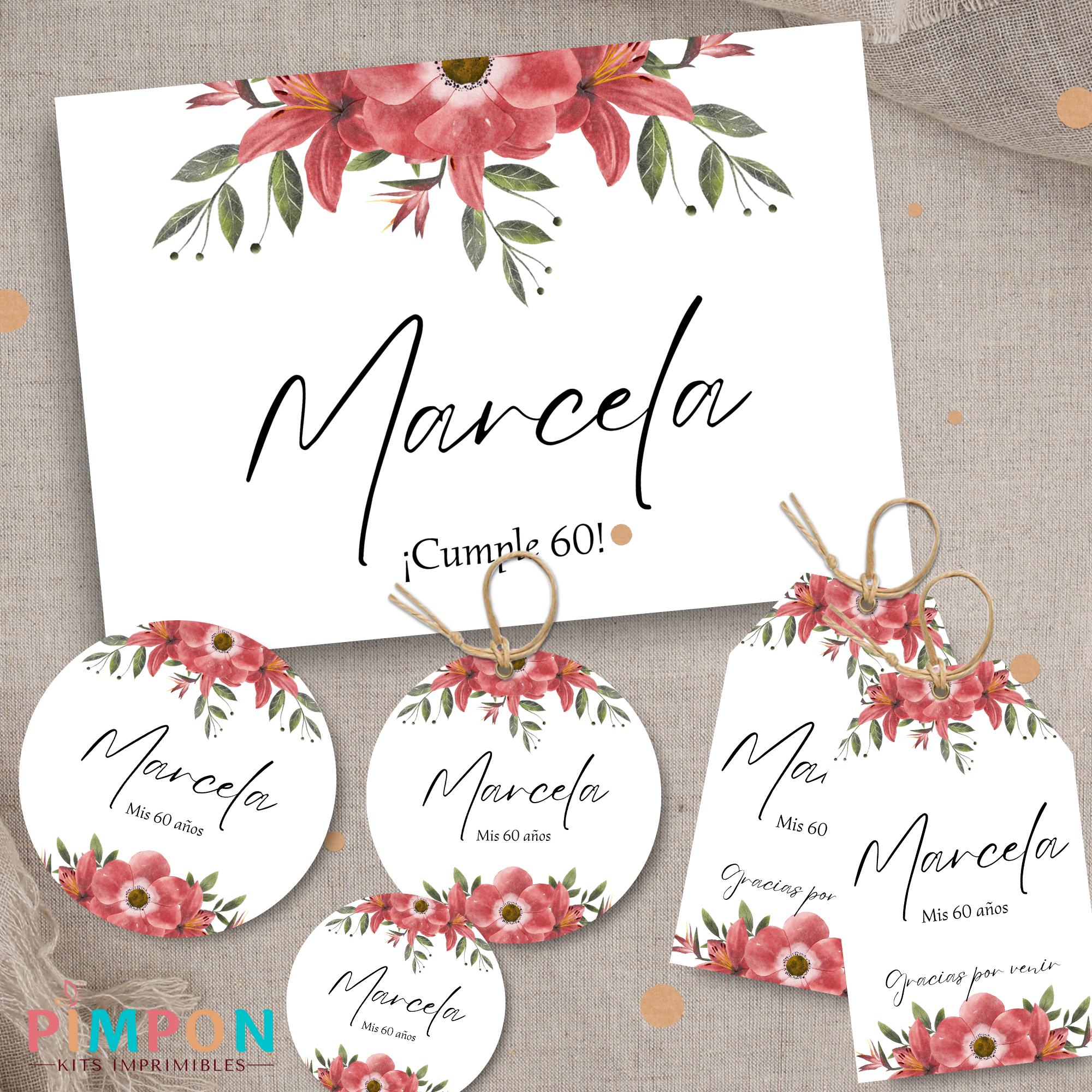 kit imprimible textos editables - FLORES - FLORAL ROJO