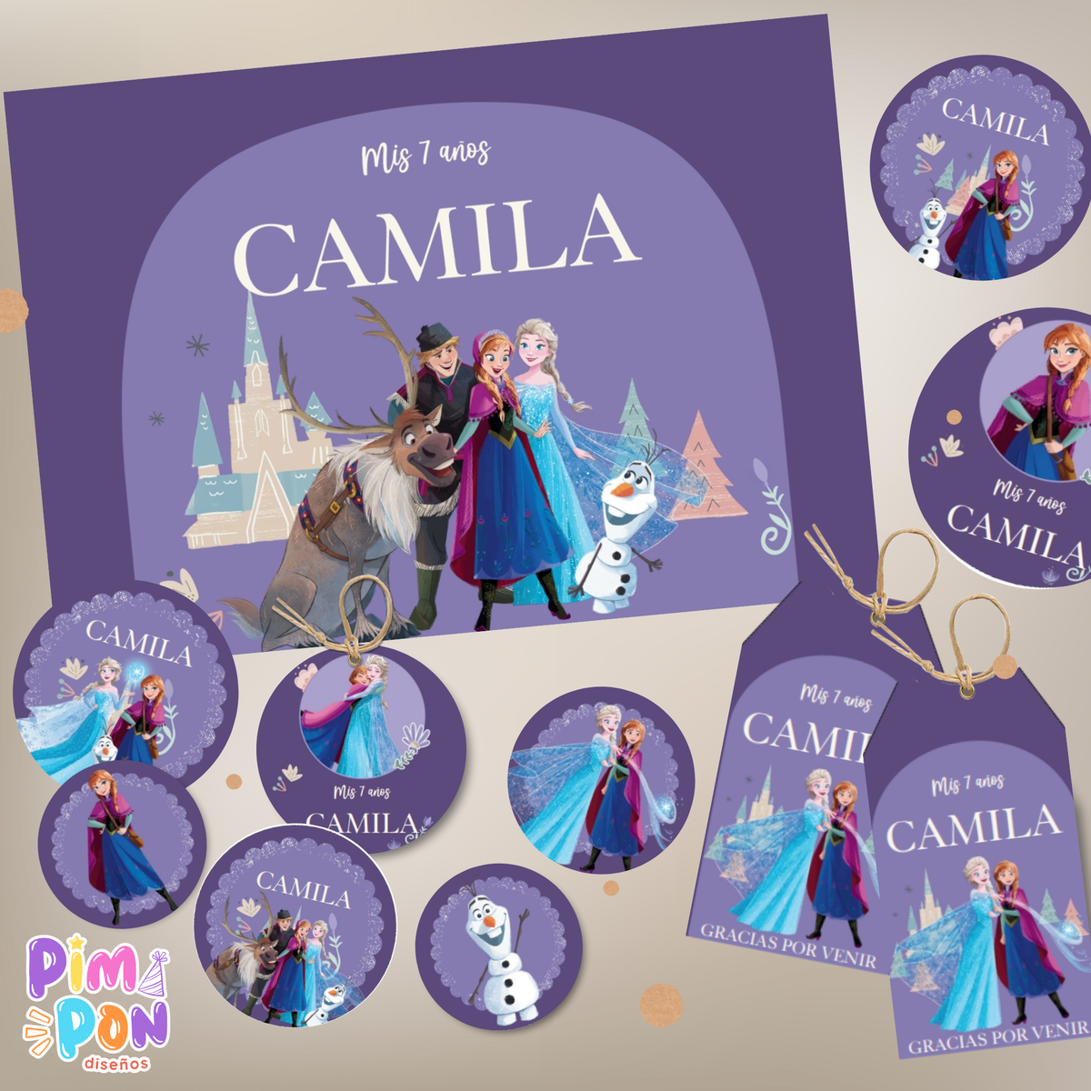 - El kit es tal como lo ves publicado, no hacemos cambios de personajes, tipografía o color.