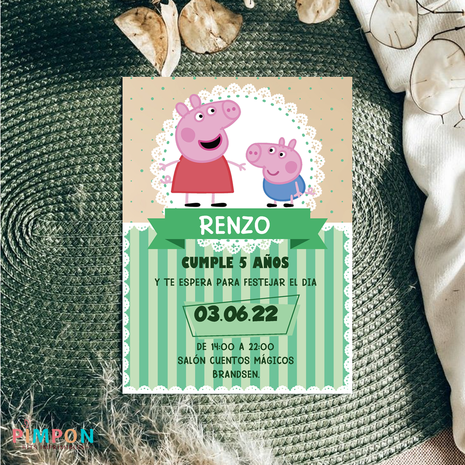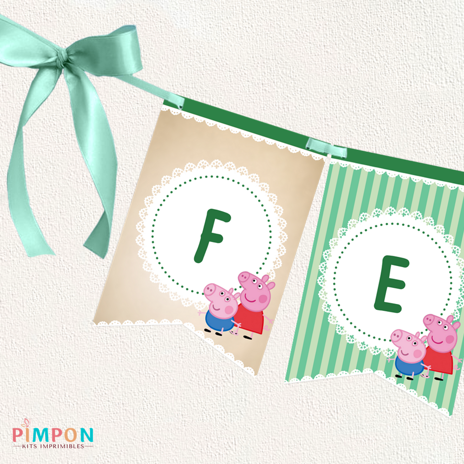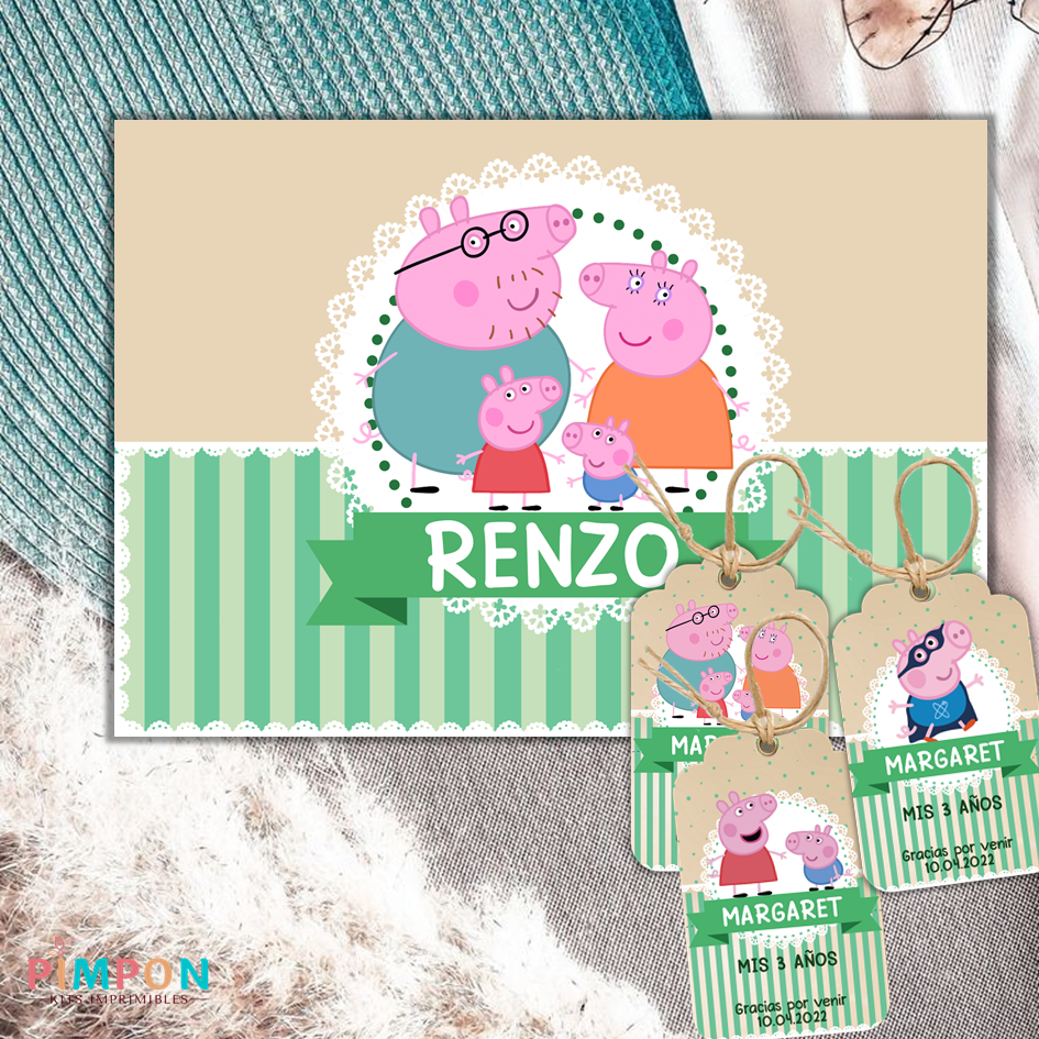kit imprimible textos editables - PEPPA PIG Y GEORGE PIG VERDE
