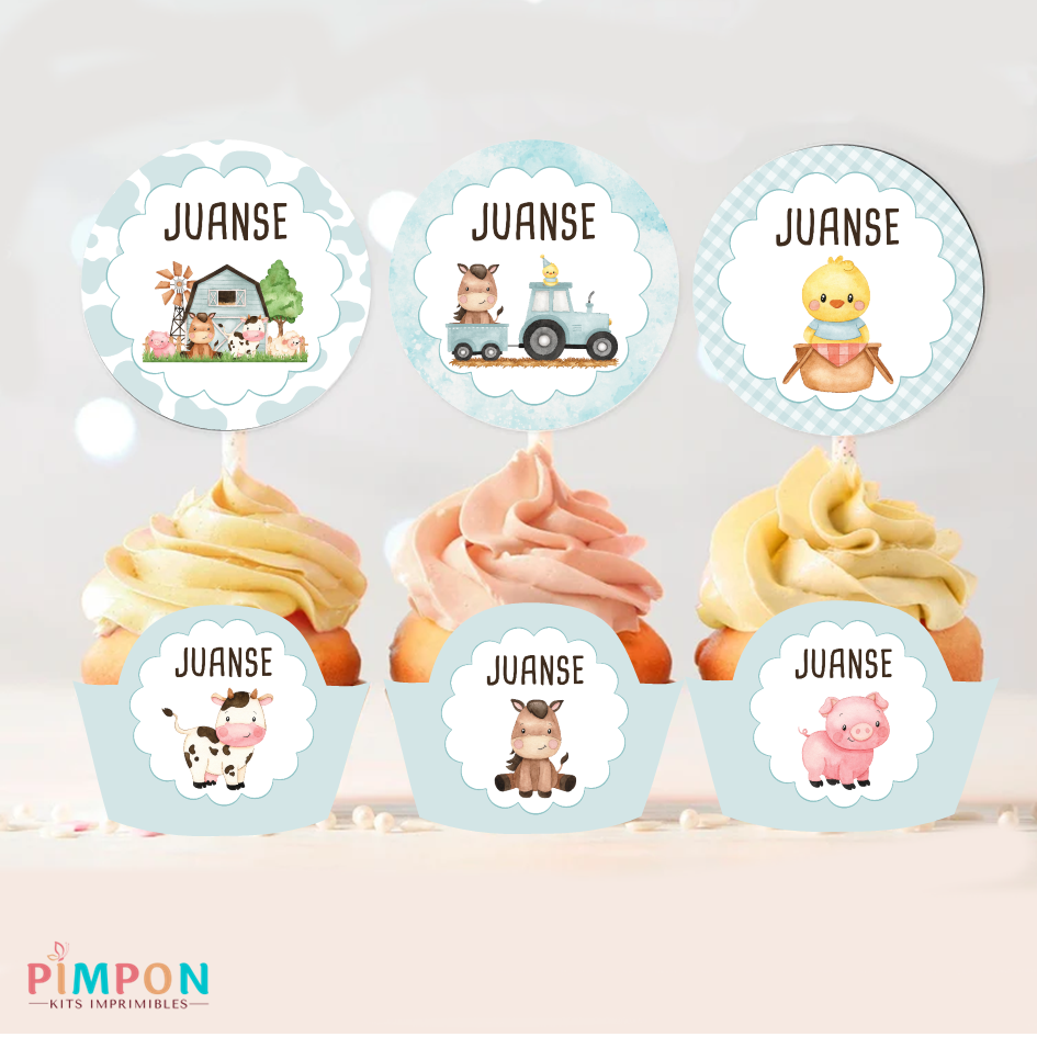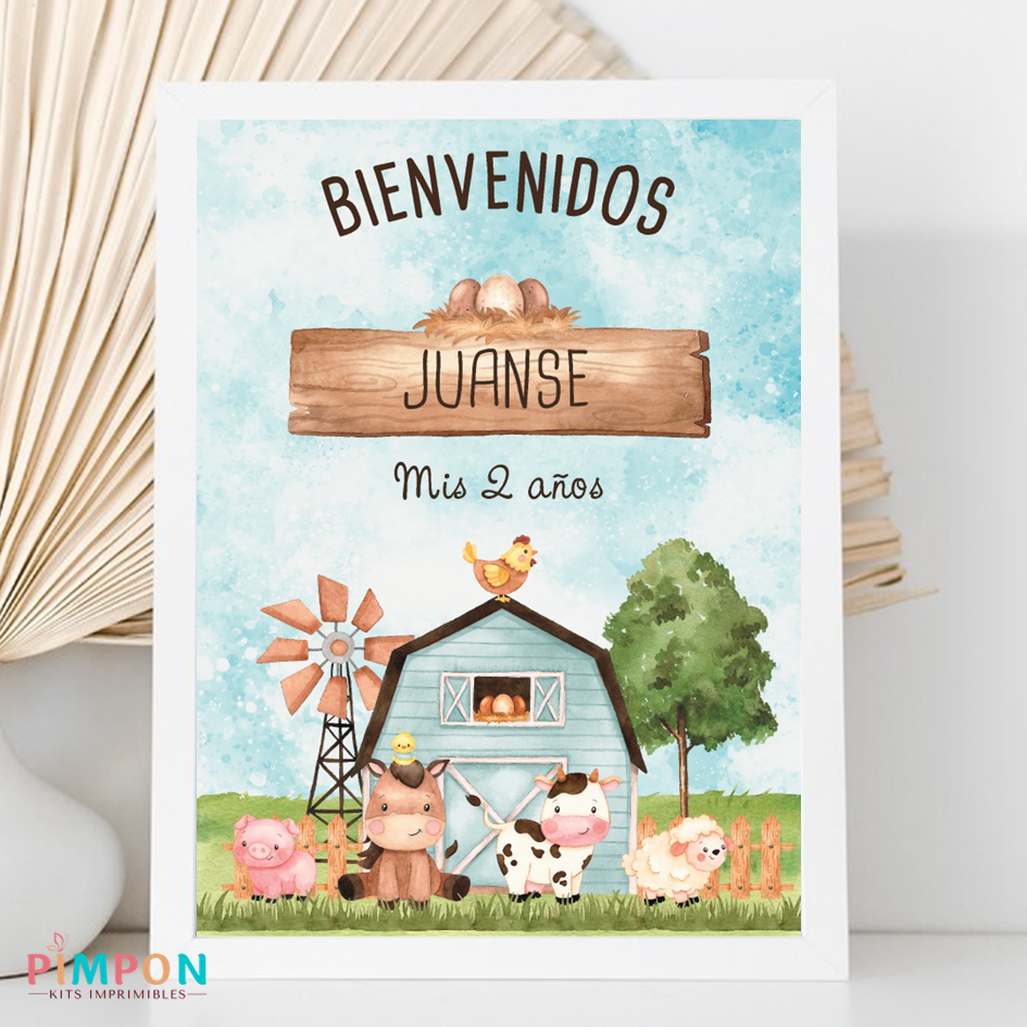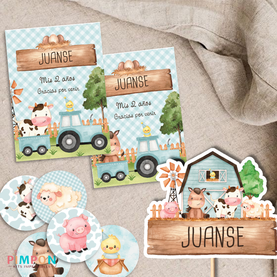 kit imprimible textos editables - GRANJA ACUARELA TURQUESA