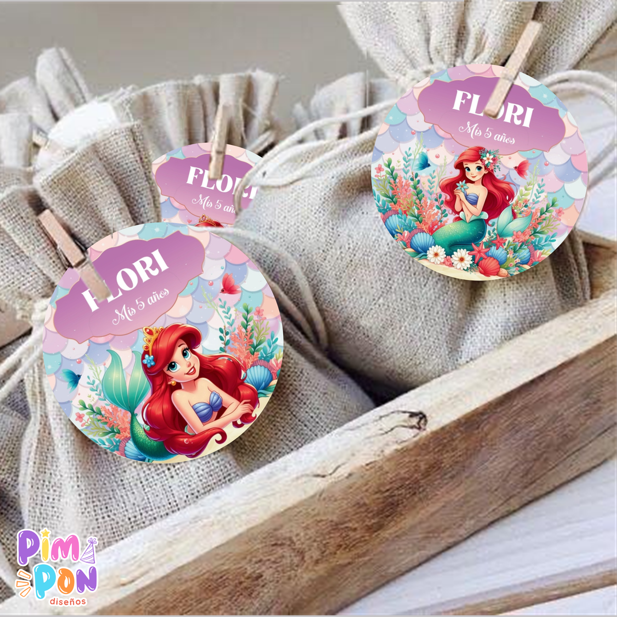 kit imprimible textos editables PRINCESAS - ARIEL LA SIRENITA