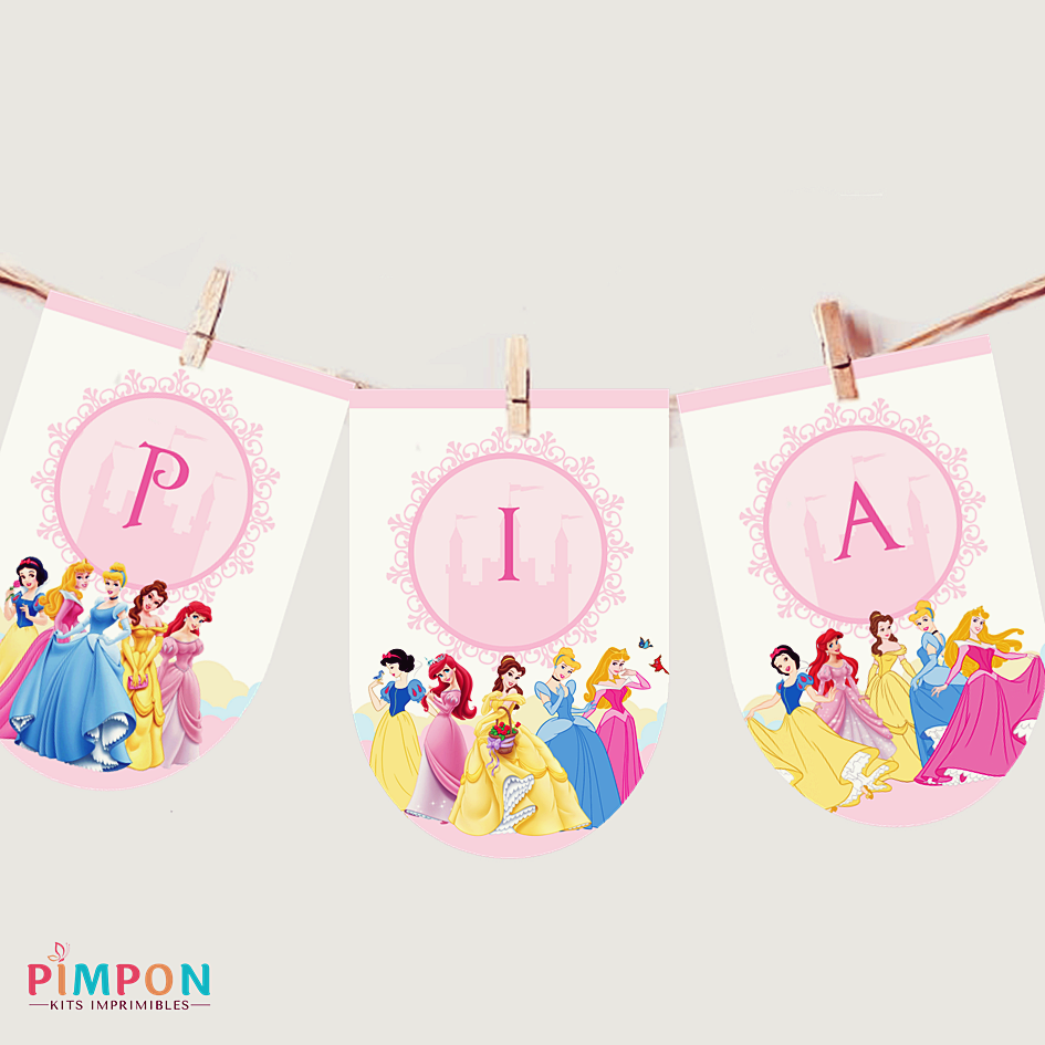 kit imprimible textos editables - PRINCESAS DISNEY