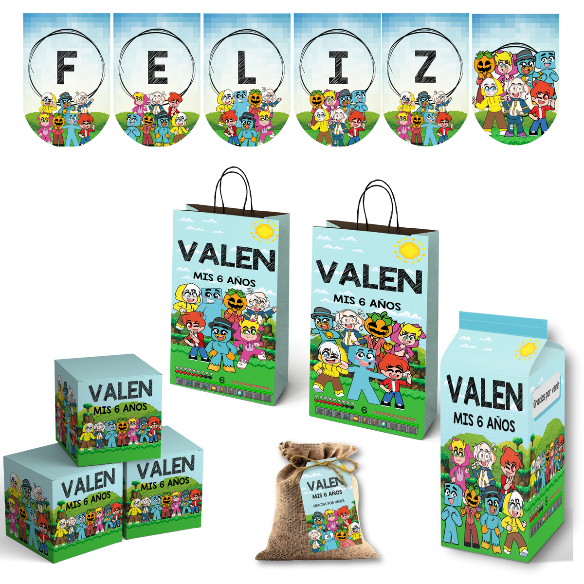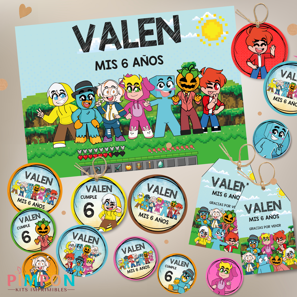 - El kit es tal como lo ves publicado, no hacemos cambios de personajes, tipografía o color.