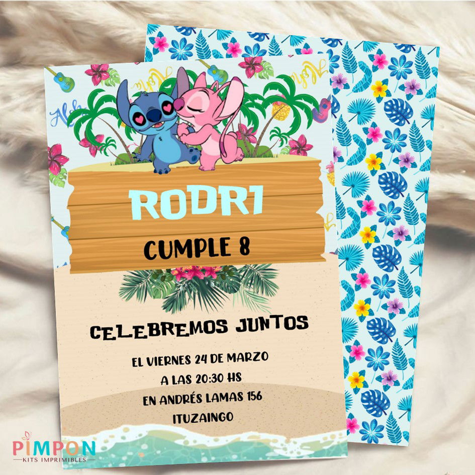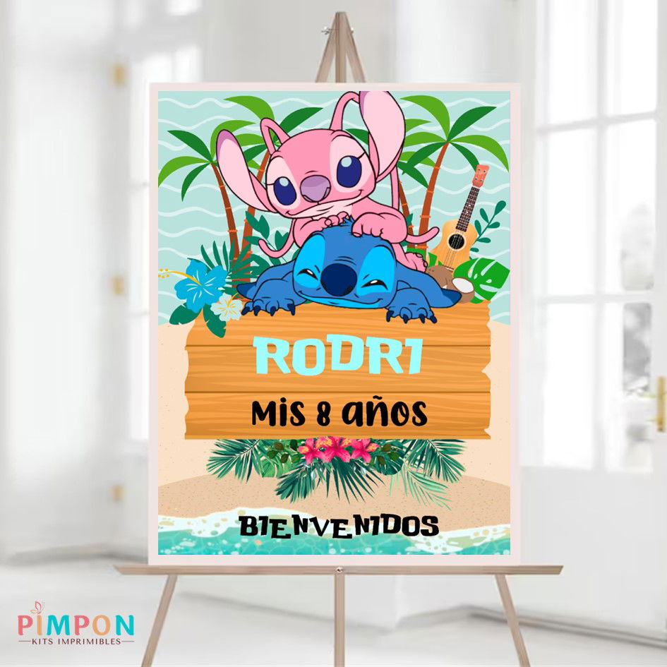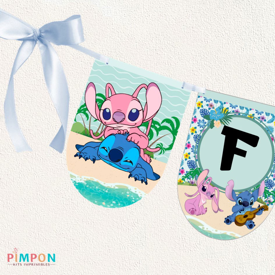 kit imprimible textos editables - STITCH Y ANGEL